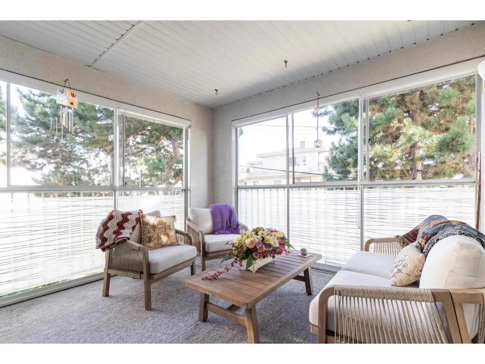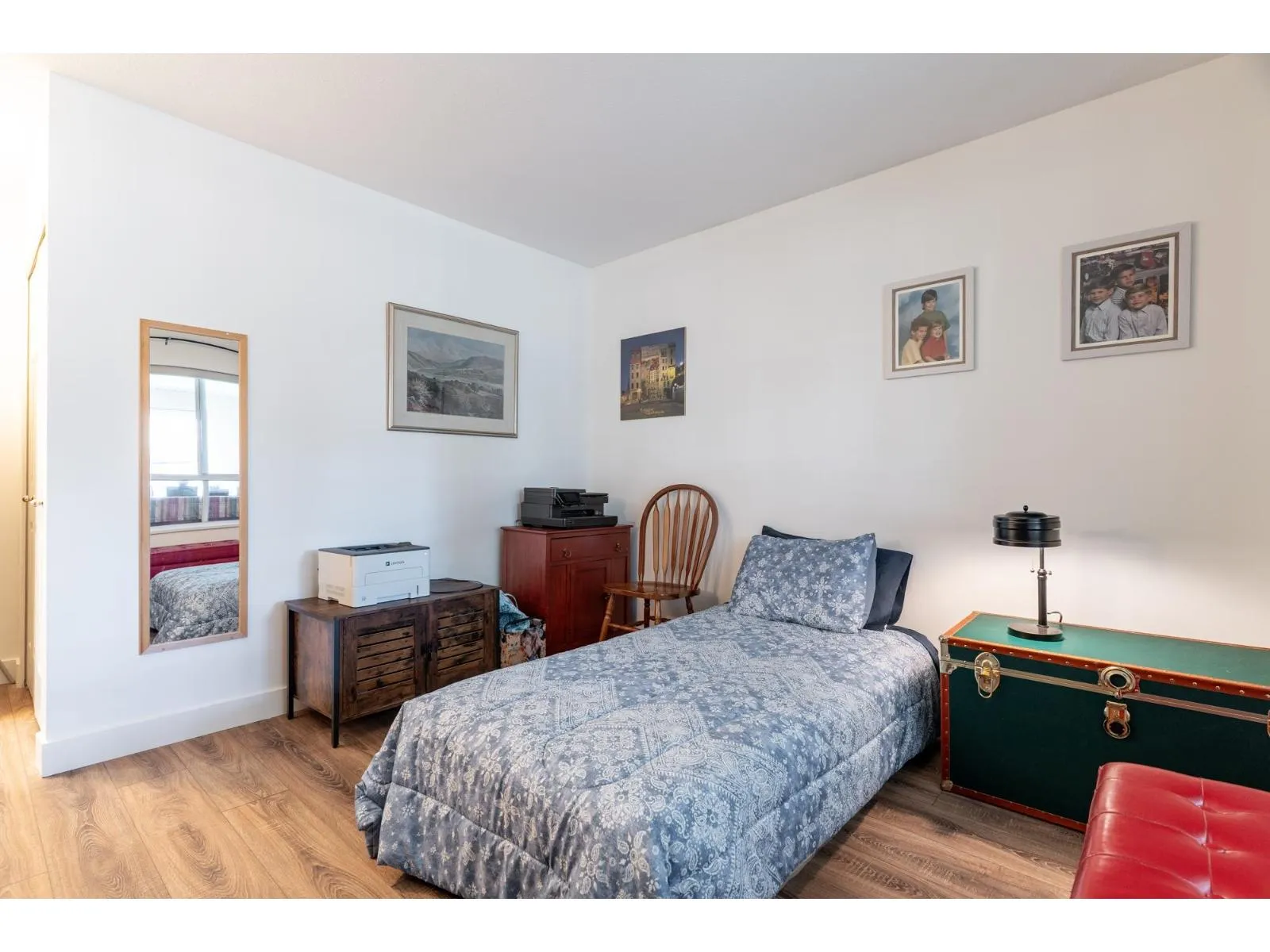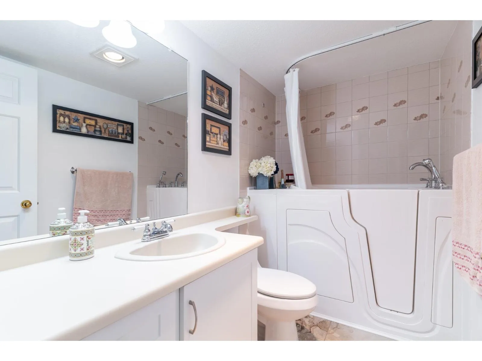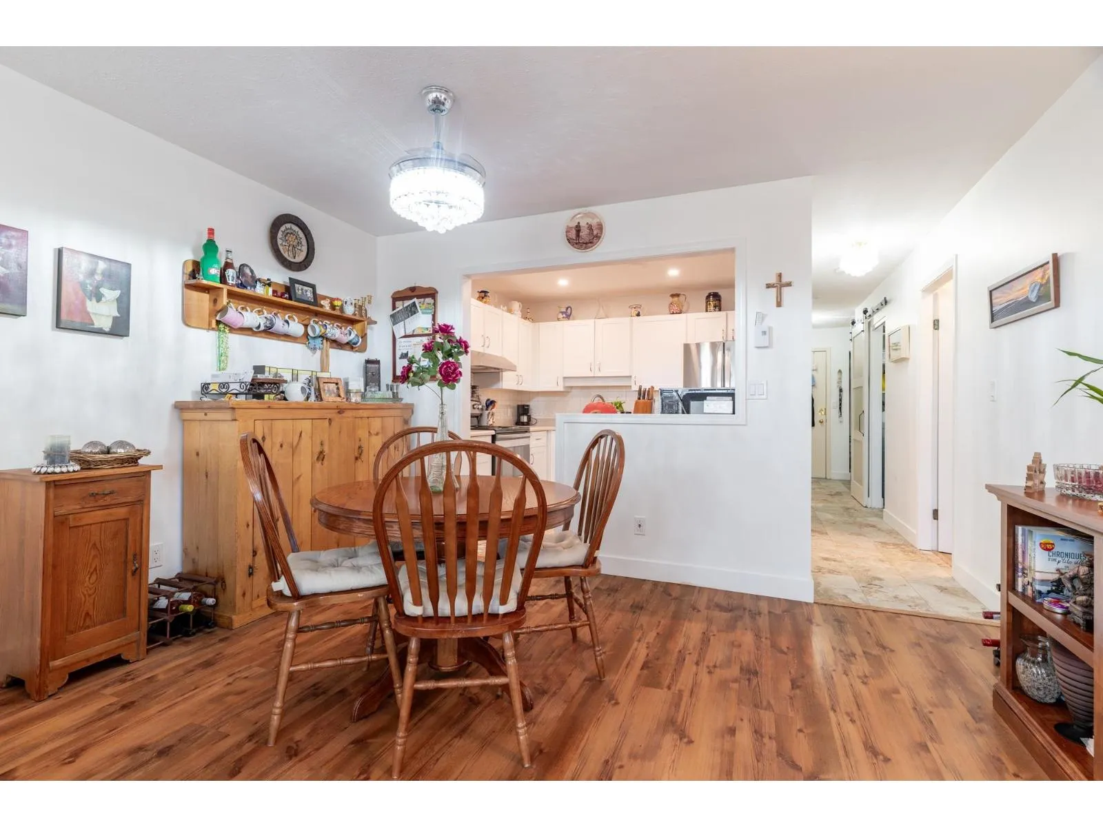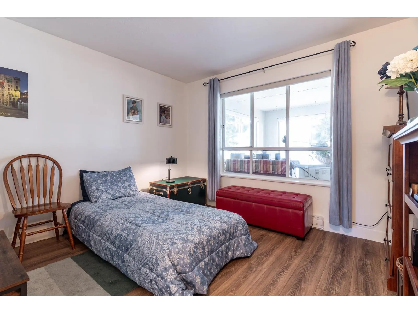 Welcome to The Carrington in Uptown White Rock! This beautifully updated 2-bedroom, 2-bathroom home offers 1,143 sq.ft. of bright, functional living space, + additional 154 sq.ft. of enclosed solarium-style space-perfect for a home office, reading nook, or extra lounging area. Newer laminate flooring in both bedrooms. Kitchen & bathrooms nicely updated w/modern new white cabinet doors and new tile flooring. South-facing windows flood the home with natural light, offering a warm, inviting atmosphere & even a small peek-a-boo ocean view! A full-sized laundry room adds everyday convenience. The well-maintained building features secure underground parking, a workshop, and a rec/party room. One resident must 55 and one cat allowed. Fantastic location close to all amenities! (id:27476)