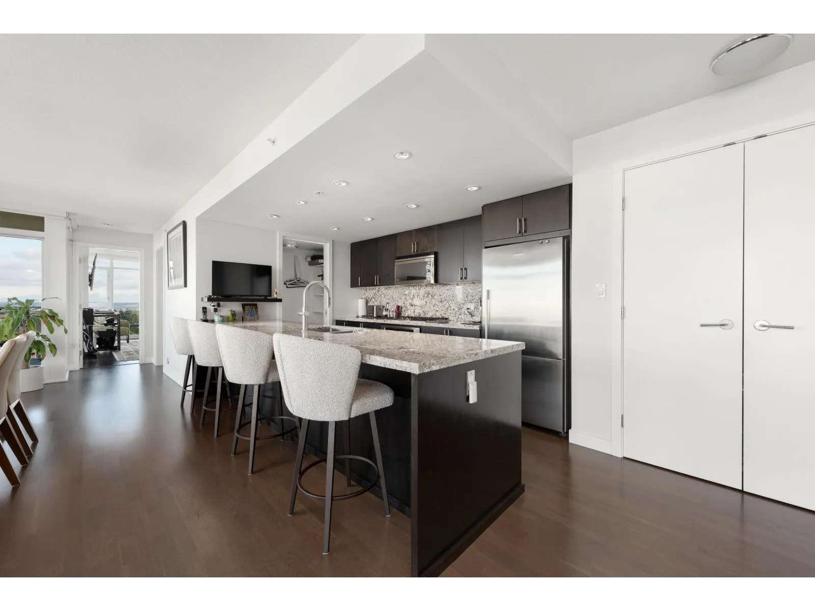 LIVE the ultimate White Rock Lifestyle immaculate/stunning AVRA residence. Soak in PANORAMIC on entry sunrise-to-sunset views sweeping Mt Baker across the North shore mountains to golden evening skies from your floor-to-ceiling windows and private balconies - every day feels like a luxury costal retreat. Inside: Bright open, light-filled layout, extra large islanded, gourmet, kitchen finishes, pull out drawers and serene bedrooms inclusive of separate outdoor spaces. LIVE steps from Uptown shops, cafe's, restaurants, and the famous White Rock promenade and beach. AND..A RARE TRIANGLE OF CONVENIENCE Includes 2 XL storage lockers side-by-side + 2 XL EV-wired stalls Side-by-side on P1 all within a 5-10 second walk of each other and the elevator. - Luxury meets effortless seaside living. (id:27476)