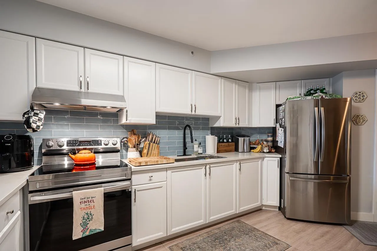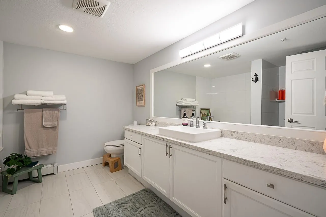 Completely renovated 2-bedroom, 2-bath home situated in the prestigious Pacific View 2 complex, boasting a prime 5-corners location in White Rock. This meticulously updated residence spans 1,259 square feet and offers an impressive ocean view from the balcony. The interior showcases exquisite upgrades including a spacious kitchen with quartz countertops and new appliances, elegant laminate flooring, and contemporary bathrooms. The building has been meticulously maintained, with notable enhancements such as rainscreening in 2007, a new roof, thermal windows, and a boiler installed in 2020. Experience the sophisticated ambiance of the area, conveniently located near shops, White Rock Beach, schools, and more. Low strata fees cover heat, hot water, and gas, ensuring a hassle-free lifestyle. (id:27476)