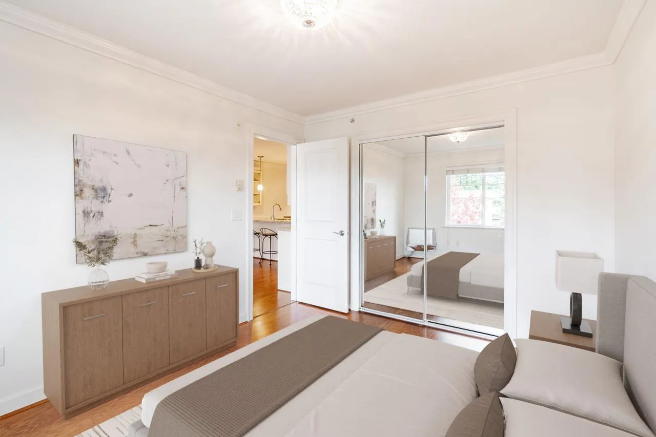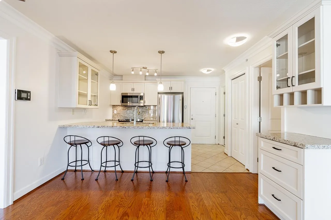 Welcome to Regency Court Penthouse living-this top floor corner suite offers 2 bedrooms, 2 bathrooms and 1,003 sq. ft. of bright, sun-filled living space. Freshly painted and move-in ready, this home features built-in air conditioning in both bedrooms for year-round comfort, plus large windows that capture natural light throughout. Enjoy ocean views from your private balcony. Two secure parking stalls and a storage locker add everyday convenience. Ideally located in a central, walkable White Rock neighbourhood close to shops, cafés, restaurants, transit and the beach. A rare penthouse opportunity in a sought-after building. OPEN HOUSE SATURDAY & SUNDAY FEB 14 & 15 2-4pm! (id:27476)