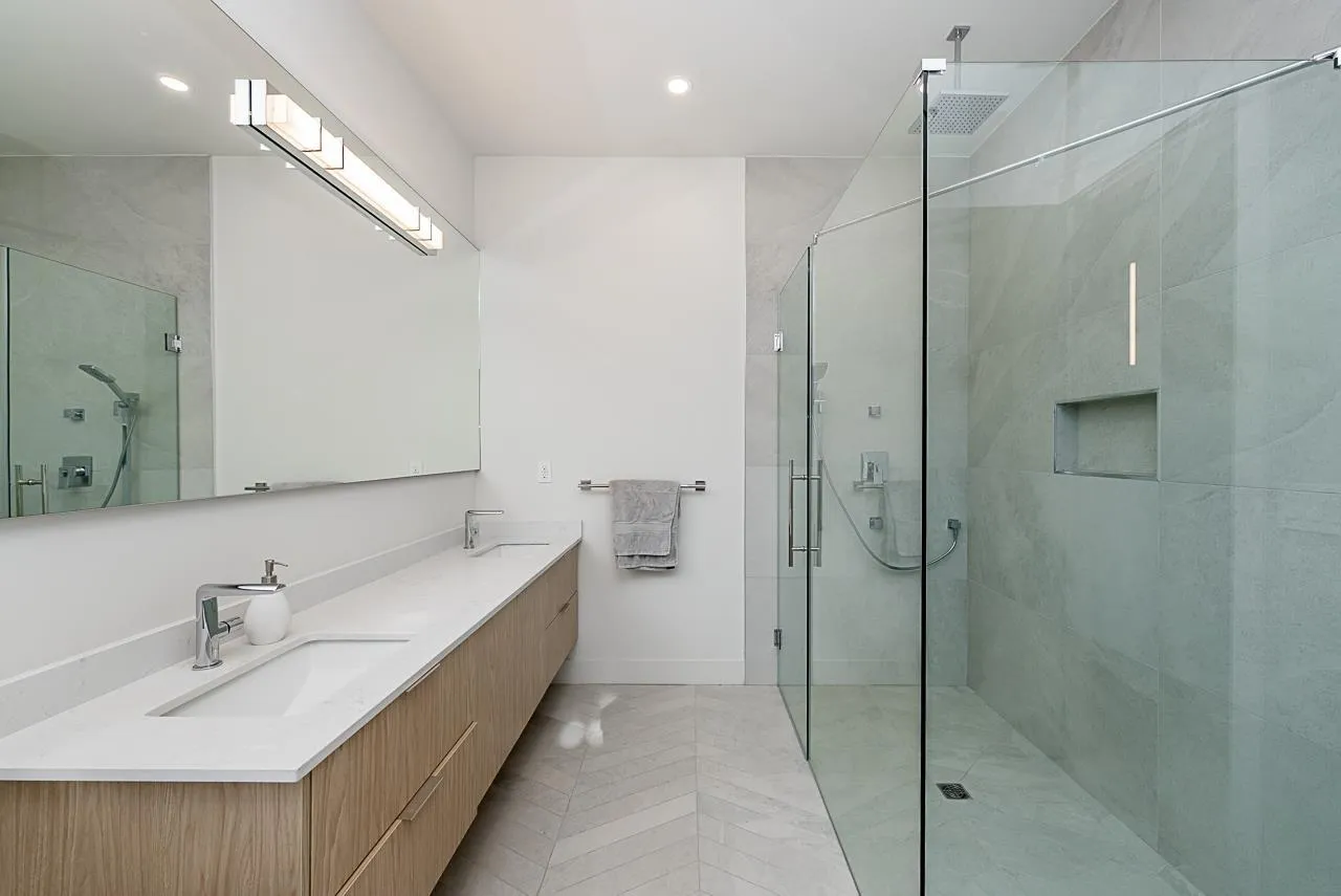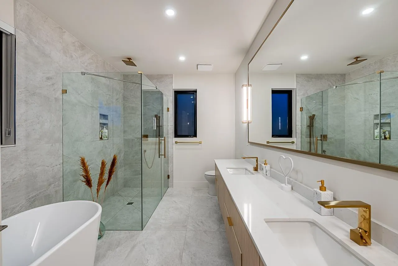 Perched on a south facing lot, this California inspired home offers a perfect blend of coastal living with striking architecture and OCEAN VIEWS! Featuring high ceiling glass walls that flood the space with natural light, a rooftop terrace, expansive patios and spa like primary suites with soaker tubs. The chef's dream kitchen features PREMIUM appliances, a stunning 12 ft waterfall island, and a double entry wok kitchen that seamlessly connects to a spacious living area and formal dining space equipped with a wine cellar and coffee nook. Featuring bedrooms on the main floor, the lower level transforms into the ultimate entertainment zone- distinguished bar, rec room, theatre room, flex living space and a legal suite. Open house Sun Feb 15 2-4pm. (id:27476)