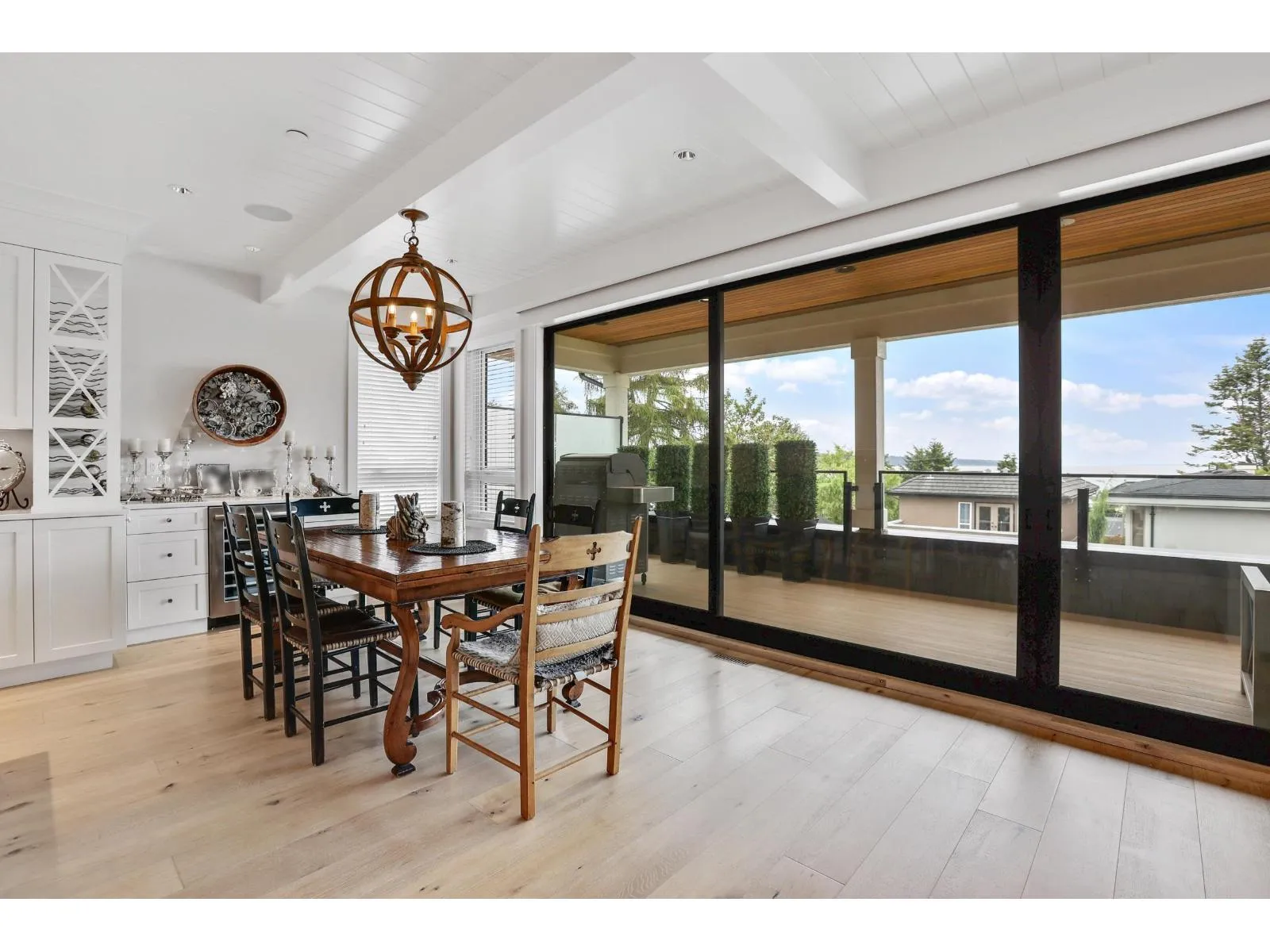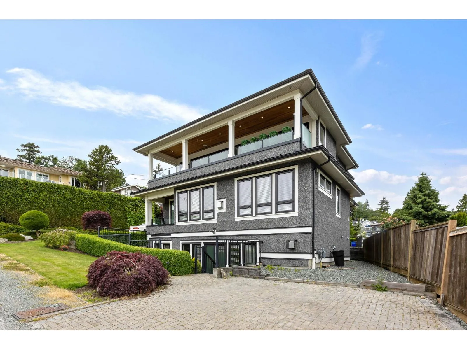 WAS RENTED TO A MOVIE STAR. For the discerning homeowner who values bespoke luxury and exceptional craftsmanship, this stunning 2017 redesign by Kendall Ansell Interiors and Square One Construction elevates the home to a level of sophistication rarely seen. This reverse-plan home features tanned oak flooring and custom cabinetry throughout the open-concept top floor. Enjoy ocean views and fresh breezes through floor-to-ceiling windows and 12-ft wide easy-touch sliding doors. The north-facing Lumon-covered patio backs onto a city park, providing a serene and private entertaining space. This 5-bedroom, 7-bathroom turnkey home includes a fully outfitted garage with EV prep, and a recently installed elevator. The legal 2-bed, 2-bath, fully furnished suite offers additional income potential. (id:27476)