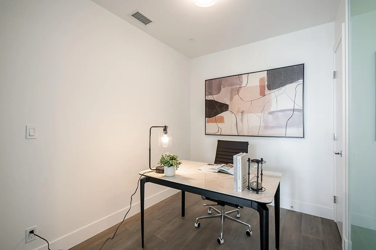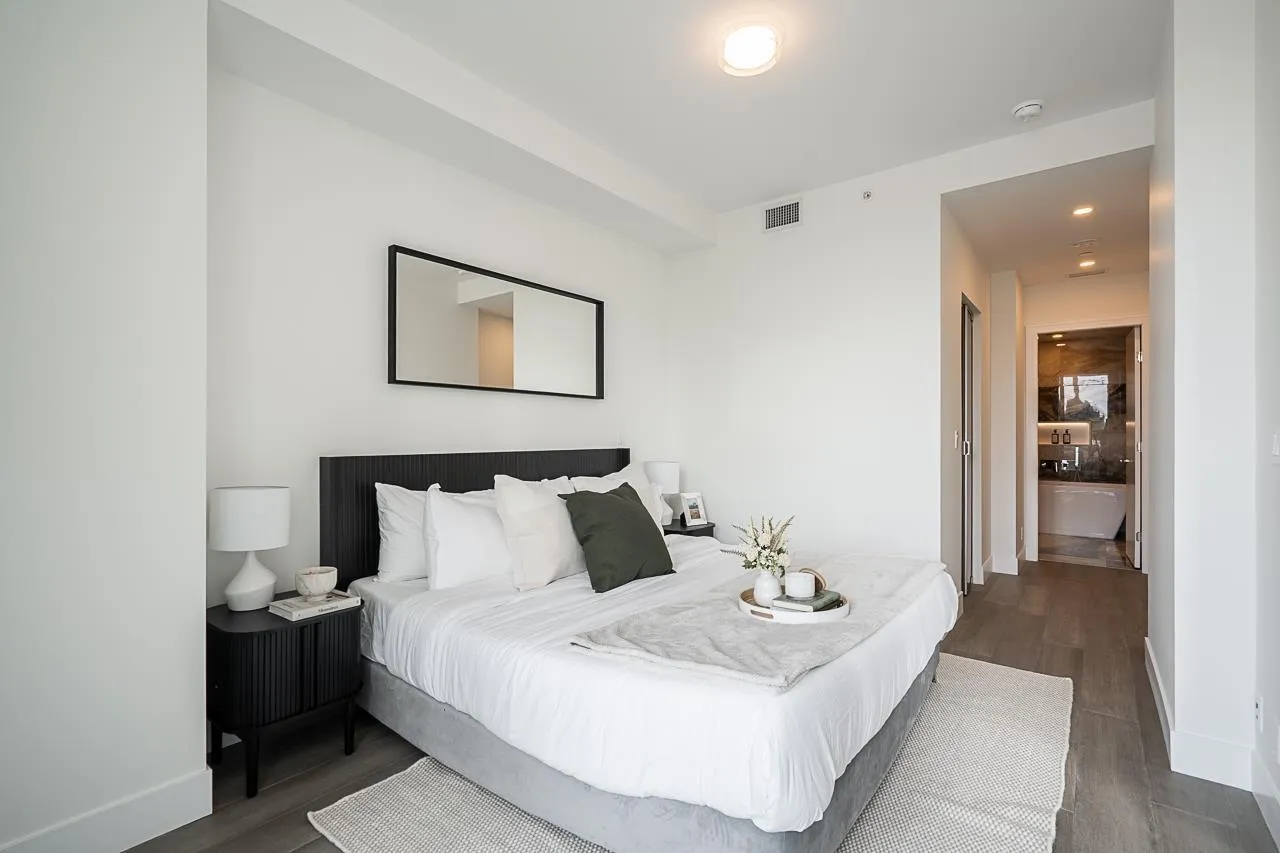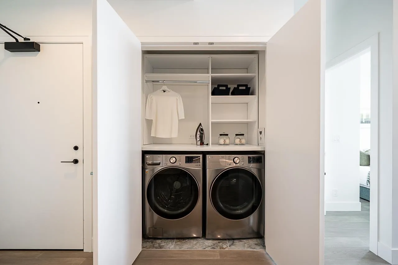 Monaco by Solterra - Elevated living in White Rock. 13 story concrete fully air conditioned, luxury boutique building located just South of Thrift Avenue. Two bedroom plus flex with 2 full bathrooms. Thermador appliances including a 36" fully integrated fridge, wifi enabled convection wall oven, 5 burner gas cooktop, and drawer microwave. Also included is a 24" integrated beverage fridge. Stunning custom kitchen made and designed in Italy and includes a single slab quartz backsplash and quartz hood fan cover. Do you love having a large luxurious ensuite bathroom? This home was made for you! Double vanity, heated tile floors, free standing soaker tub, separate water closet and large stand up shower. (id:27476)