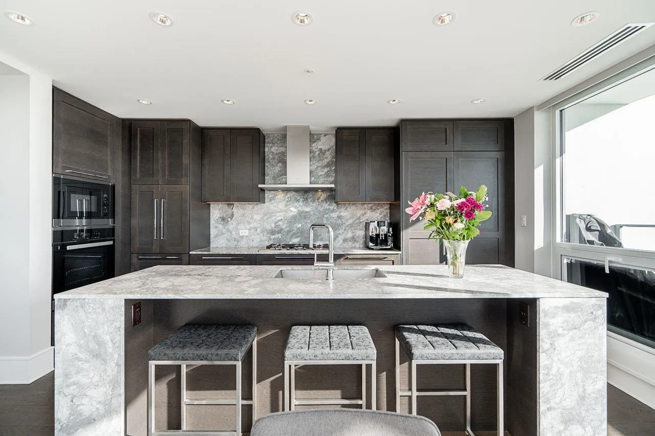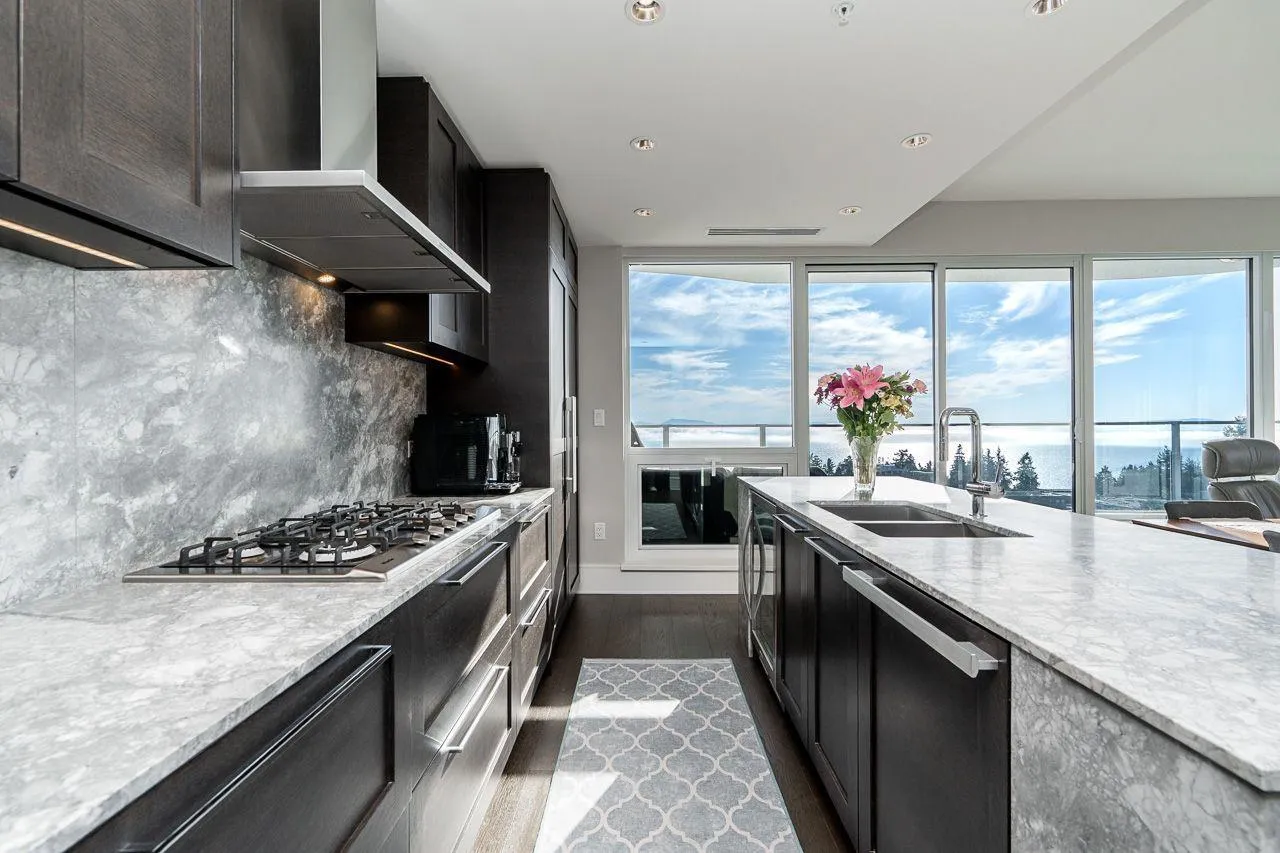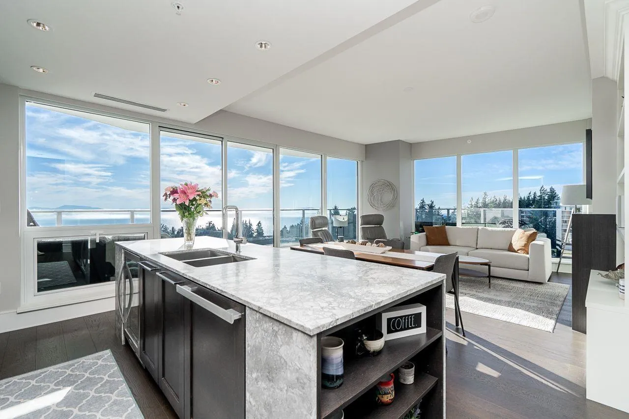 Elevated Sea Side Lifestyle with SPECTACULAR SW panoramic OCEAN VIEWS in this luxury high-rise in downtown White Rock at The FOSTER MARTIN. Stunning 2 Bed/3 Bath,1278 sq ft corner unit features engineered floors; quartz waterfall-edged countertops; Miele appls; floor to ceiling windows with motorized blinds; customized shelves & cabinetry; laundry room; huge wrap around balcony for amazing sunsets; AC/heat pump etc! Exceptional amenities include your 24 hr Concierge, Indoor/Outdoor pool, hot tub, sauna, steam room, fitness center & entertainment room. TWO parking / storage/ and bike storage included &TWO pets allowed. Shops & services downstairs - walk across to city center - catch transit outside - or walk to the beach & pier! Fabulous community - superior location! (id:27476)