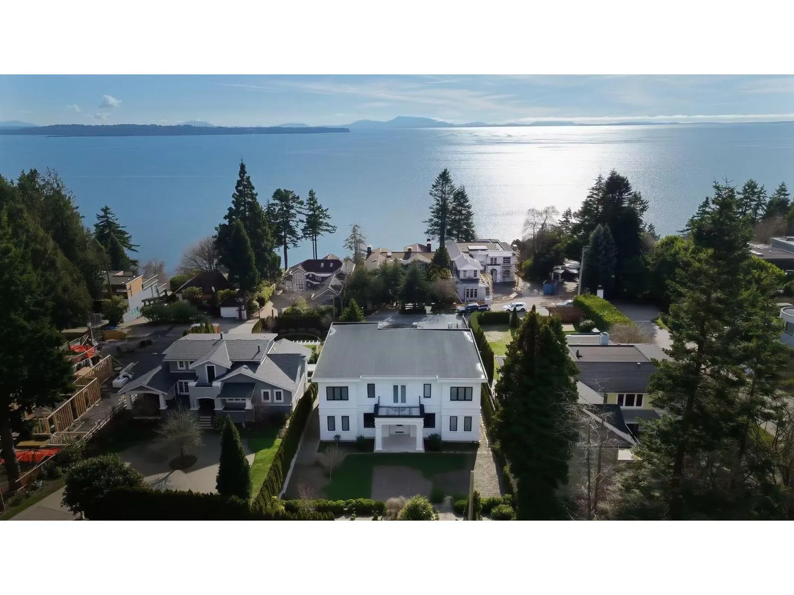 Exceptional custom-built 3-level ocean-view home in one of White Rock's most prestigious enclaves. Offering 7,000 sqft of refined living with ocean views from principal rooms on two levels. Main floor features open living and dining areas, gourmet chef's kitchen with premium appliances, separate wok kitchen, private office, and a main-floor primary/second master with patio access. Upper level offers three ensuited bdrm, including a primary suite with sitting area, two walk-in closets, and spa-inspired ensuite. Lower level includes a rec/media room, wet bar, gym, & guest bdrm. Expansive sun decks on main and upper levels total approx. 1,600 sqft (not included). Fully gated 13,939 sqft south-facing lot. Radiant heating, A/C, HRV, double garage, ample parking. Bayridge & Semiahmoo catchment. (id:27476)