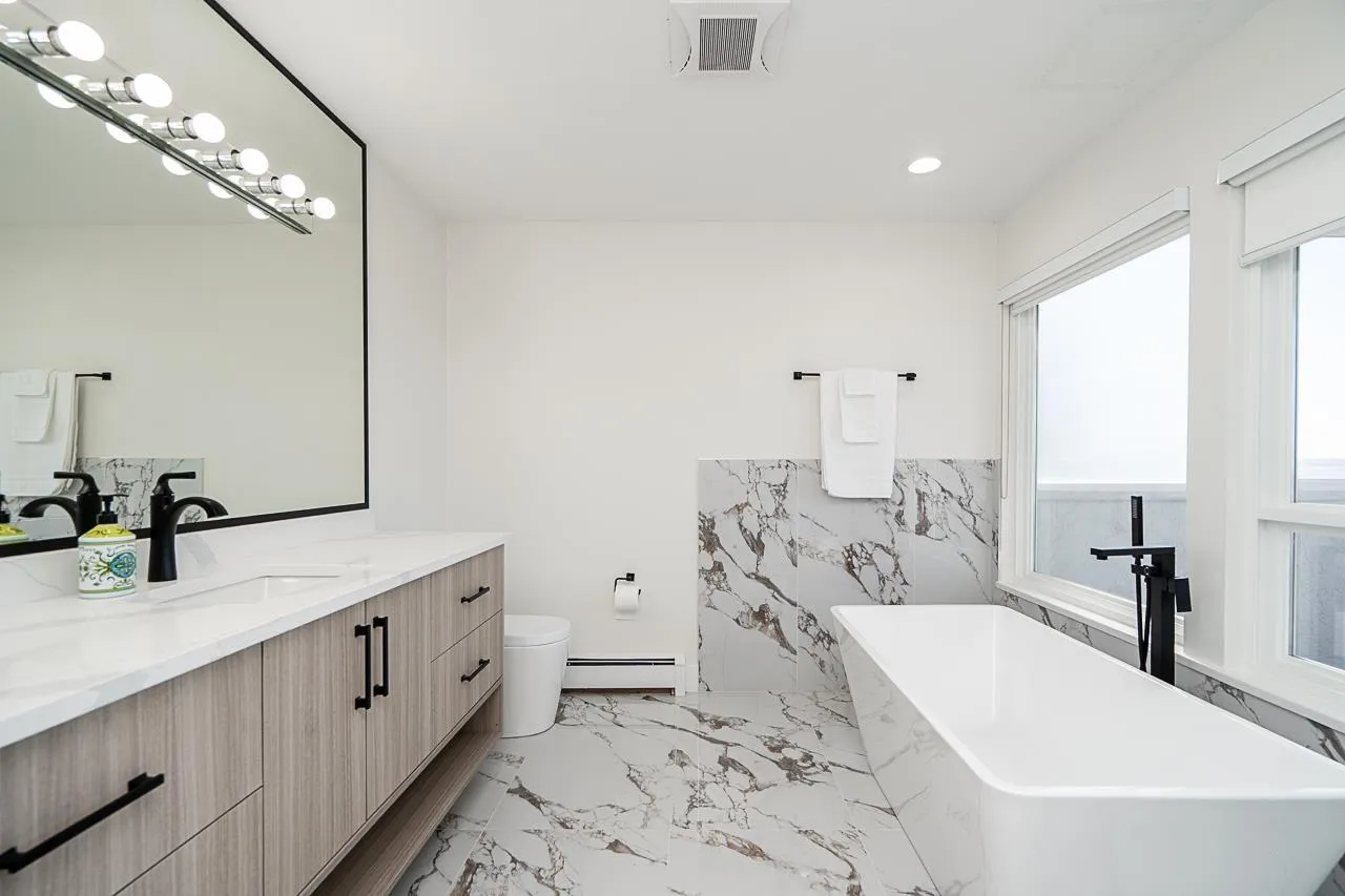 180° ocean views! Don't miss this fully renovated 3,060 sq ft 3-level home with unobstructed 180° ocean views + legal airbnb! South-facing 3,600 sq ft lot with one of the largest driveways on the street-parks 9 cars! Open layout with brand new kitchen, gas cooktop, large island, and solarium to enjoy year-round ocean views. 3 bedrooms on the second level including a spacious primary with walk-in closet, oversized ensuite, and private balcony. Basement features a newly licensed 1-bed Airbnb suite with $50K+ income potential. Enjoy sunsets from Mt. Baker to the Gulf Islands-a rare White Rock gem! (id:27476)