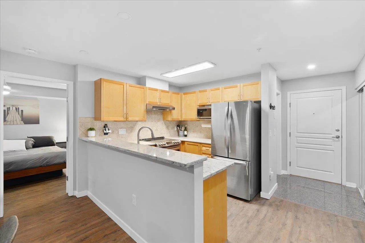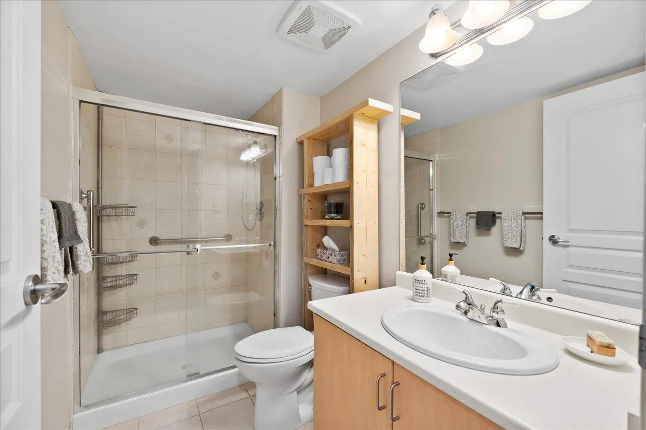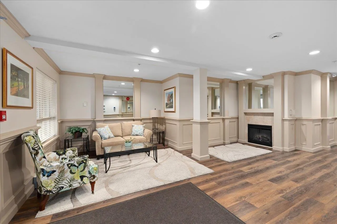Private GROUND-floor living with green space views on QUIET side of building (NOT FACING 152ND) in sought-after Muirfield Gardens! Move-in ready 2 bed+large den(or 3rd bdrm!) with a functional layout, no wasted space, & luxury vinyl plank flooring throughout. Open kitchen boasts ample cabinet space, stone counters, breakfast bar & updated appliances. Spacious living/dining area with cozy gas fireplace(gas incl. in MF) opens to a fully covered patio-perfect for pets or entertaining! Bedrooms sit on opposite sides for privacy; primary has walk-in closet & ensuite. Large den is perfect for a home office or 3rd bdrm. Includes 1 parking (option to rent 2nd) & locker. Proactive strata with new depreciation report, roof (2024), & great amenities incl. guest suite & gym. Convenient South Surrey location with White Rock beach, shops, schools, main transit hub & more just minutes away. Quick possession possible! (id:27476)