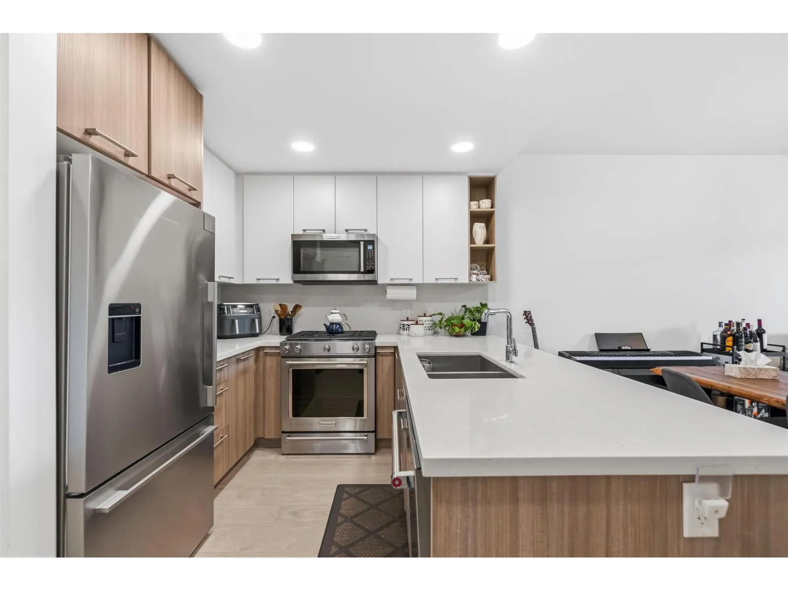 Welcome to Beachborough by Texor Homes in White Rock! This well-maintained 1 Bed + Den, 1 Bath home is quietly located off North Bluff Road, with bright south-facing exposure. Features stainless steel appliances, designer finishes, laminate and tile flooring, Mitsubishi air conditioner and a bonus heat pump for year-round comfort. Large covered balcony with natural gas BBQ connection. Includes 1 secure underground parking, 1 secured bike storage, and 1 storage locker. Access to fitness & meeting area. Walking distance to Canada's longest and one of the most famous piers. Pets and rentals allowed. PARTIAL OCEAN VIEW - Call to view! (id:27476)