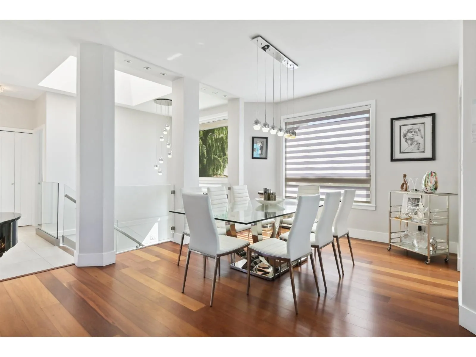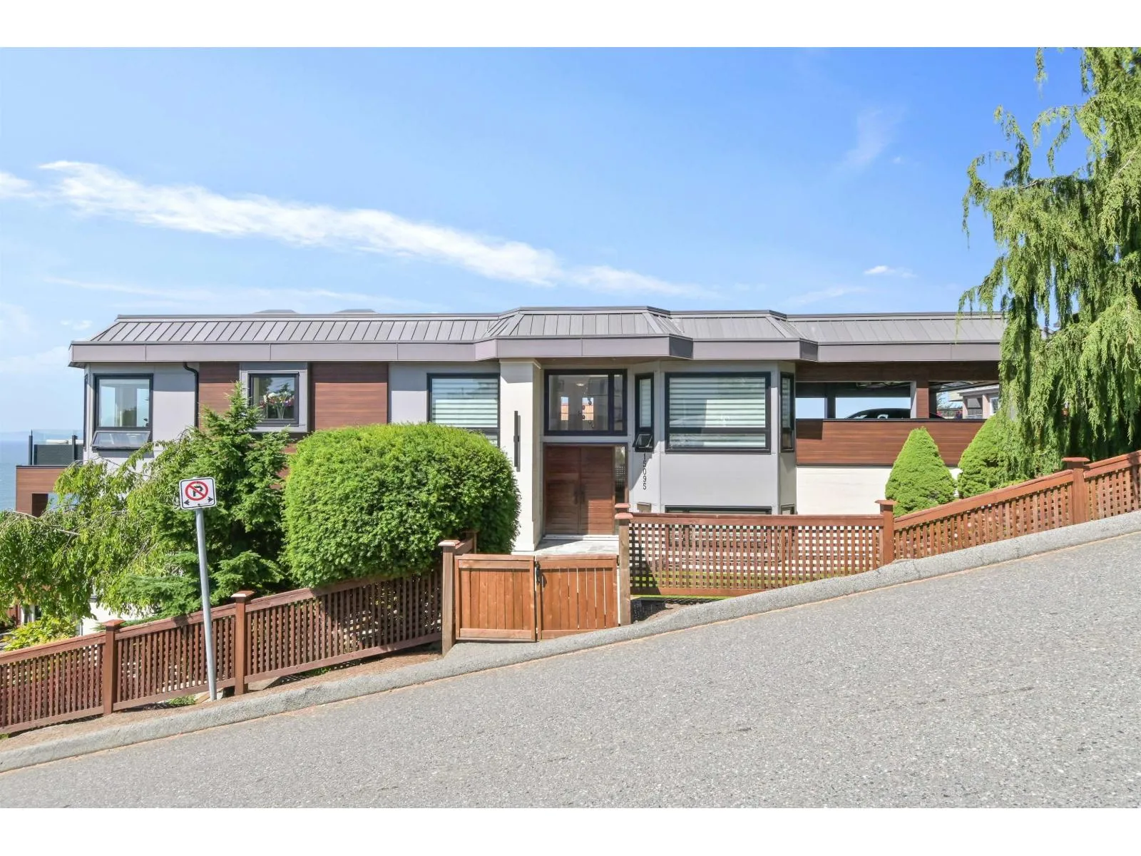 Watch the sun set while lounging on any level, and enjoy the lifestyle that living near the beach provides. This home is a reverse plan with your living spaces on the top floor to take advantage of the sunlight, spectacular scenery, and easy access from the garage. This area has a light bright airy feeling with the 9' vaulted ceiling, large windows, glass stair railings, rich cherry wood flooring, and a modern fireplace facade. Onto the middle floor also w/9' ceiling, spa inspired en-suite for the primary bedroom with ocean views, lg windows, and private covered balcony. The lower floor offers a multitude of possibilities depending on your needs, and has a lovely patio area w/views. Mature landscaping frames this home like a stunning portrait. Close to Five Corners in White Rock. (id:27476)