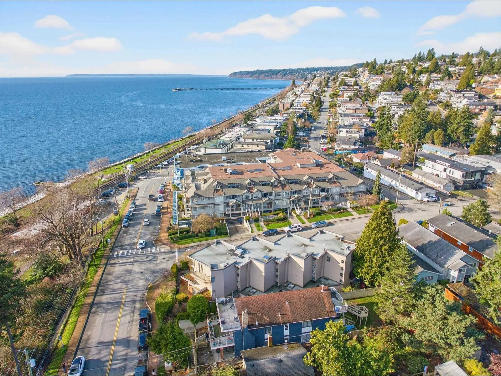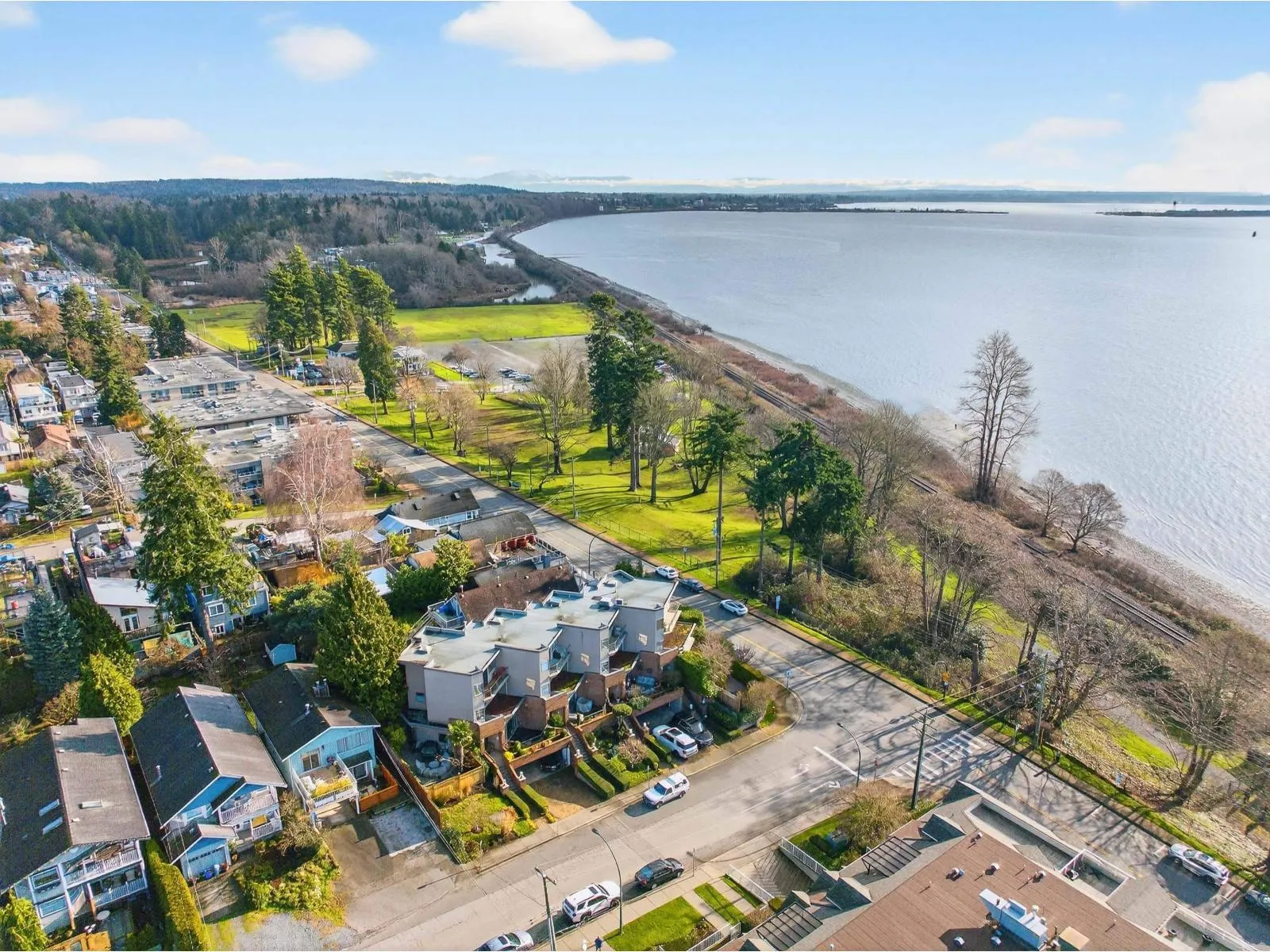 The beach is calling you! This one of a kind, 2,354 sq ft townhome sits right across from White Rock Beach with amazing VIEWS from all 3 levels. Only 4 units in this exclusive complex, - an open main floor plan features a beautifully updated modern gourmet kitchen with quartz countertops, wood cabinetry, and upscale stainless steel appliances. The entire top floor is your stunning primary (with heat pump!) and all new renovated en suite. Gorgeous luxury vinyl on the main level and high end laminate on stairs; this home has been completely painted throughout. SO MANY extras; EV charger, gas lines to front and back patios, irrigation system... the list goes on. Move in, and never lift a finger. Easy access to major routes and shopping. Your ocean oasis awaits! (id:27476)