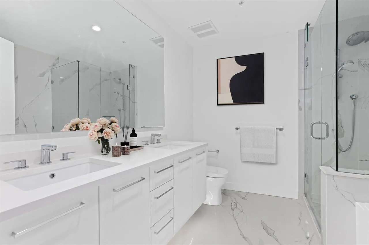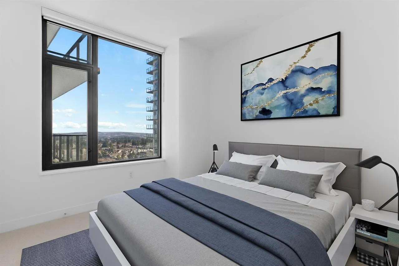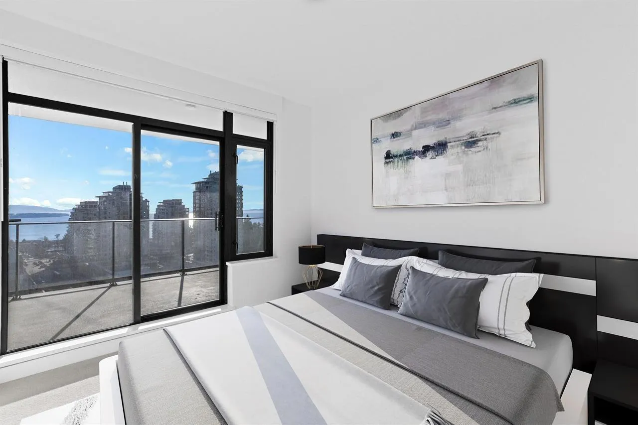 This SE Corner Unit on 23rd floor at the White Rock tallest tower Soleil, designed by award-winning Cicozzi with outstanding panoramic views of the ocean, city, Mount Baker,Sunrise and Sunset on the larger balcony with gas hookup for BBQ.This contemporary home is for your luxury enjoyment and comfort boasting 2 beds/2baths & one den, could be the 3rd bedroom with 9'6 ceilings.Bosch Appliances, Grohe fixtures, Blackout shades & A/C. Quartz countertops, Soft-close cabinetry, Hardwood/ Wool flooring/carpet & Roller blinds.The building offers its residence with 8000SQFT of top-notch amenities:Gym, whirlpool/sauna & yoga studio. Located just off North Bluff Road, steps away from Semaihamoo Shopping Centre for all shopping needs.Walking to Semiahmoo Secondary School. (id:27476)