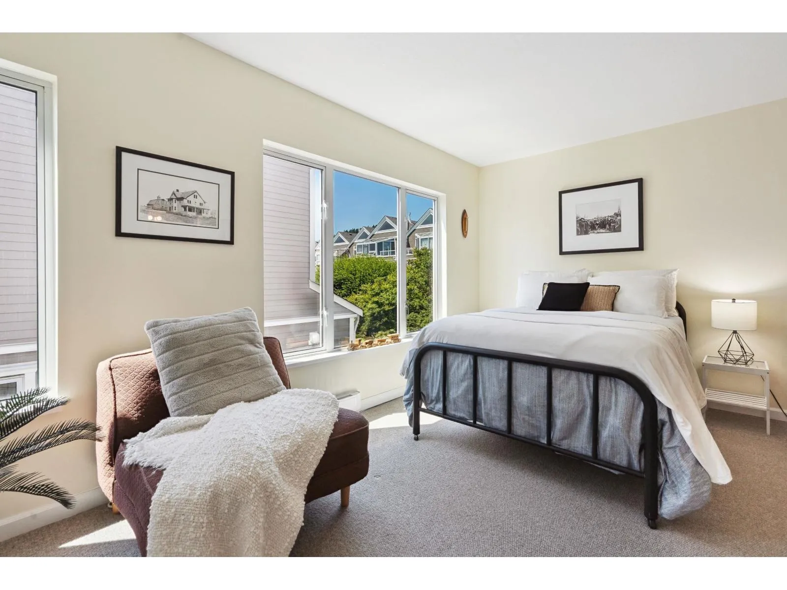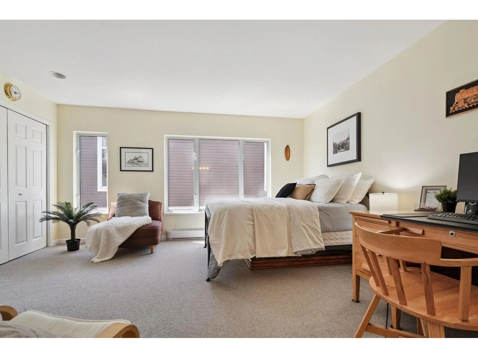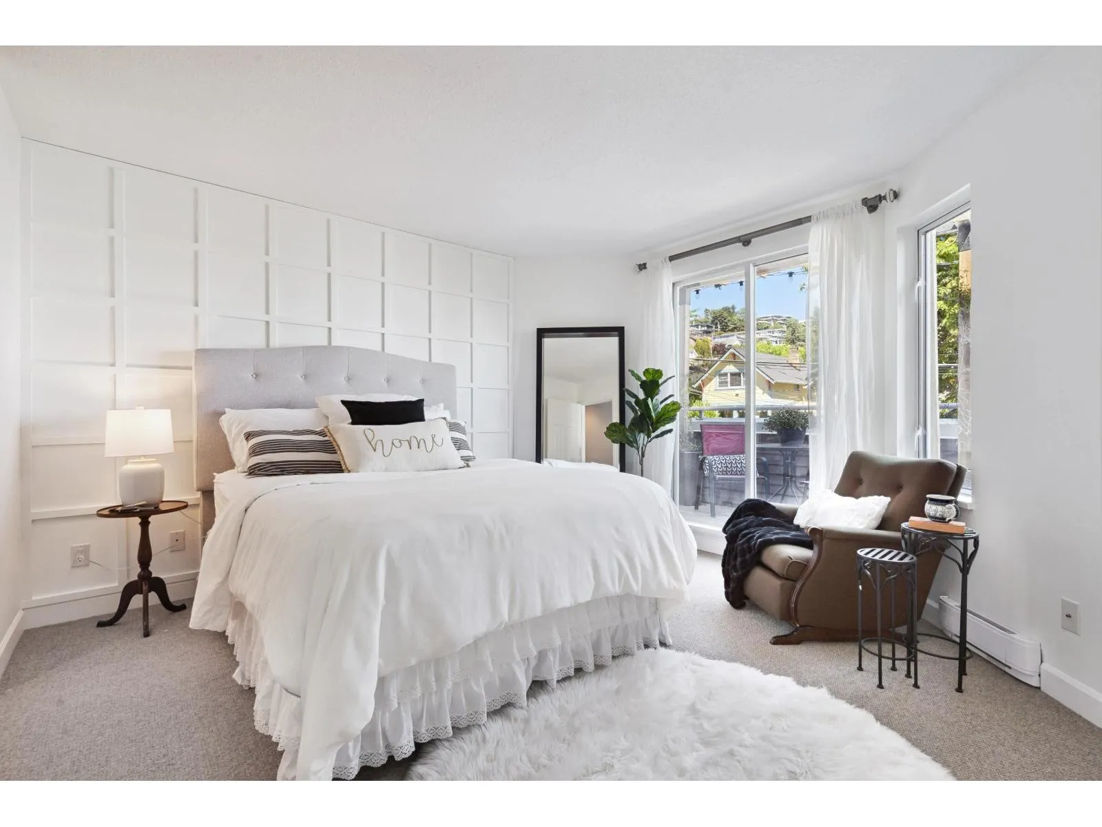 Live by the beach! Ocean views throughout this two storey townhouse across from White Rock beach. Bright & airy w soaring vaulted ceiling, skylights & large windows to capture the views. Almost 1,600 sq ft w generously sized rooms for house sized furniture. 2 sea view balconies to relax & bbq. Reverse floorplan w two large bedrooms & two full ensuite bathrooms on main; living room, dining, kitchen & powder room above. Respected Marine Court, updated w full rainscreen, hardi-plank exterior, vinyl windows, deck membranes, roof, skylights. Underground parking and storage. Pet friendly, no size restrictions. All ages welcome. Move in and enjoy the beach lifestyle. (id:27476)