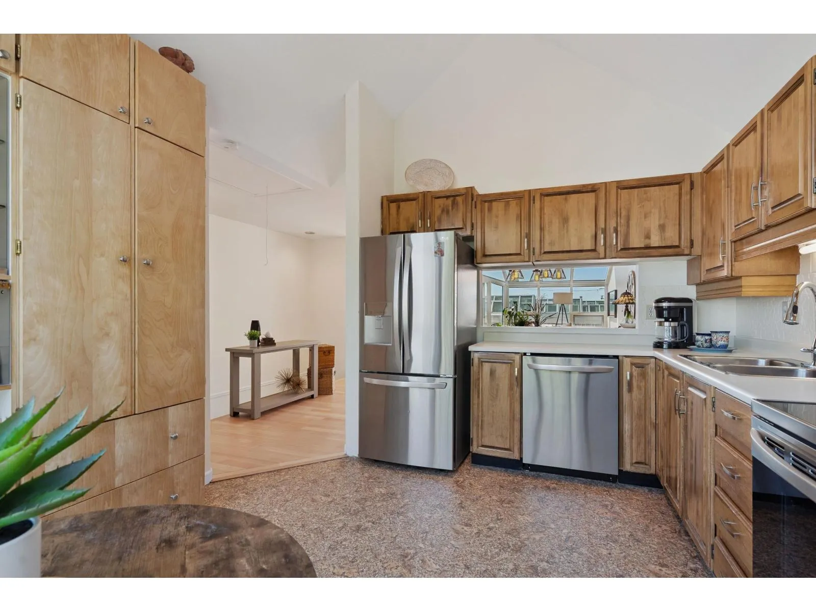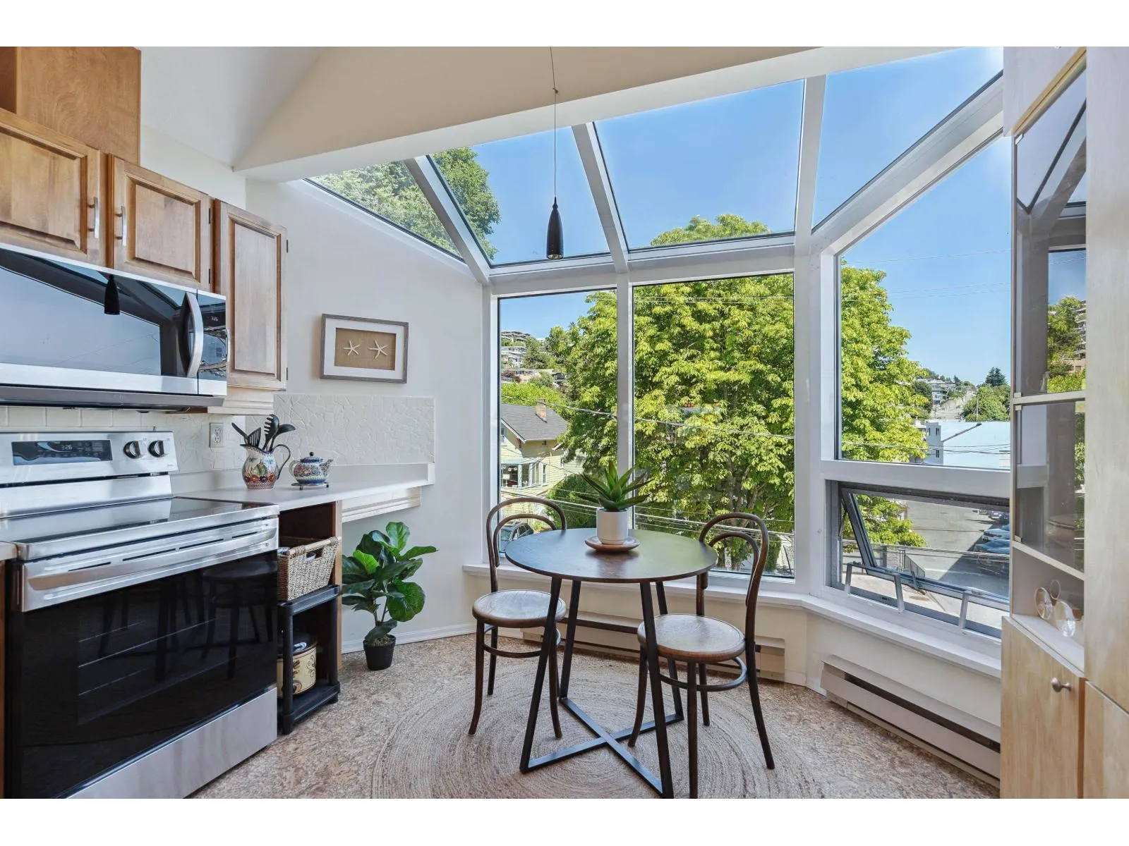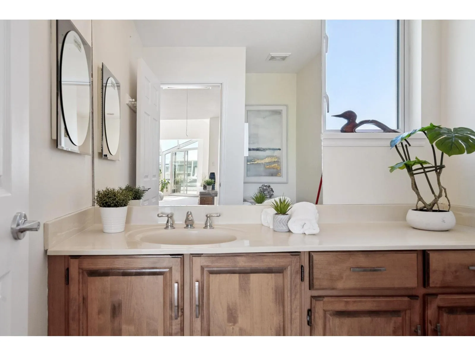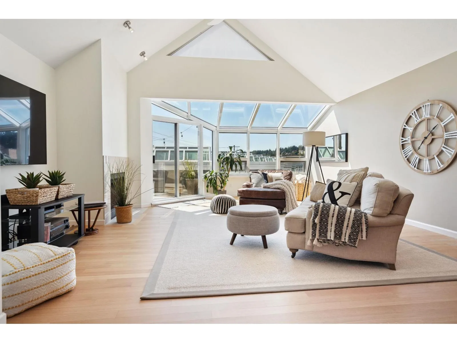 Live by the beach! Ocean views throughout this two storey townhouse across from White Rock beach. Bright & airy w soaring vaulted ceiling, skylights & large windows to capture the views. Almost 1,600 sq ft w generously sized rooms for house sized furniture. 2 sea view balconies to relax & bbq. Reverse floorplan w two large bedrooms & two full ensuite bathrooms on main; living room, dining, kitchen & powder room above. Respected Marine Court, updated w full rainscreen, hardi-plank exterior, vinyl windows, deck membranes, roof, skylights. Underground parking and storage. Pet friendly, no size restrictions. All ages welcome. Move in and enjoy the beach lifestyle. (id:27476)