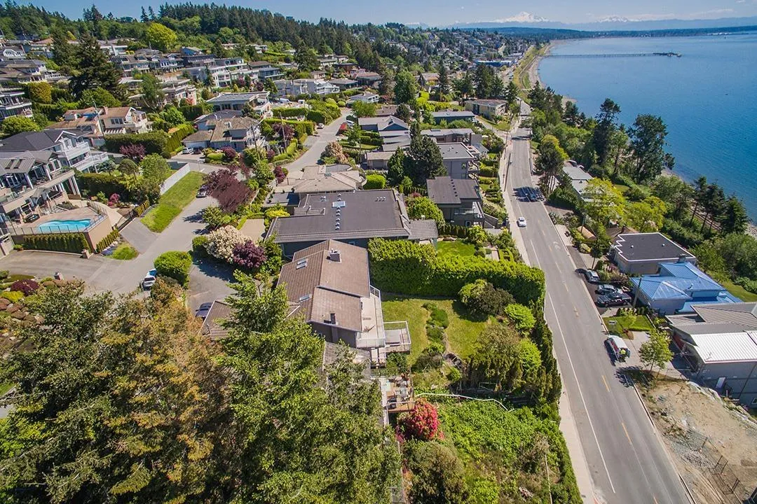 Unprecedented views on Hillside White Rock, corner 8,954 SF rectangular lot, 135 foot depth at Kerfoot/70 feet of frontage on Marine Drive South & Sunset Drive North. View is spanning East to West over the ocean, shoreline, Pier Mt Baker with sunrises east & sunsets west. Sunset Drive offers a quiet road w/ no traffic, your parking access to home is off Sunset Drive or Kerfoot Road. Walk-out basement rancher is 2,763 SF basement at 904 SF. Home offers 3 bedrooms & 2 bath. One bedroom suite below. Schools: Semiahmoo Sec & Bayridge Elem. Walk to pier, enjoy the shores of White Rock Beach every day. Clean air & healthy lifestyle. New roof went on 2021. Double Garage 477 SF & long driveway for parking RV-boats, ocean view balcony 519 SF & patio for suite 259 SF. Brochure available. (id:27476)