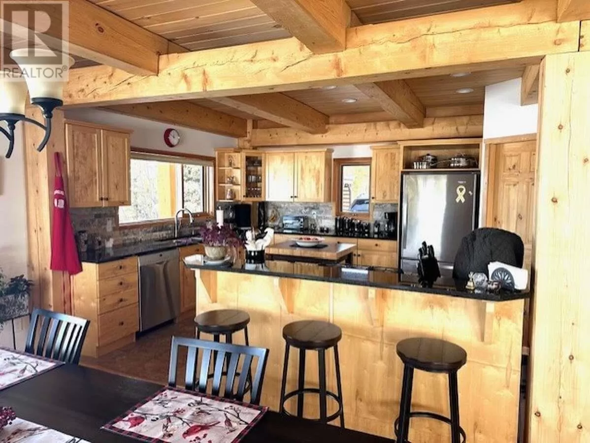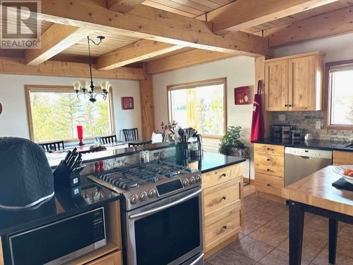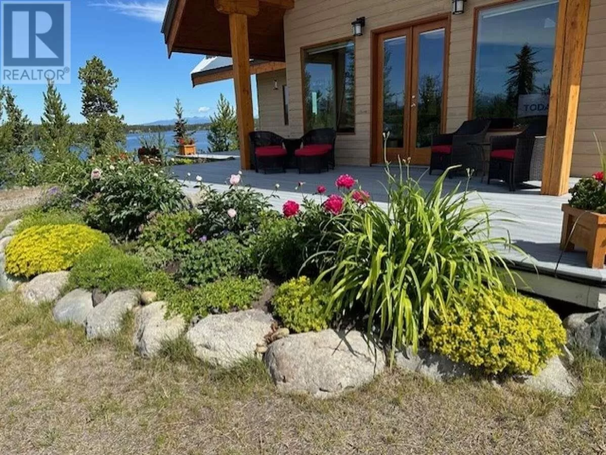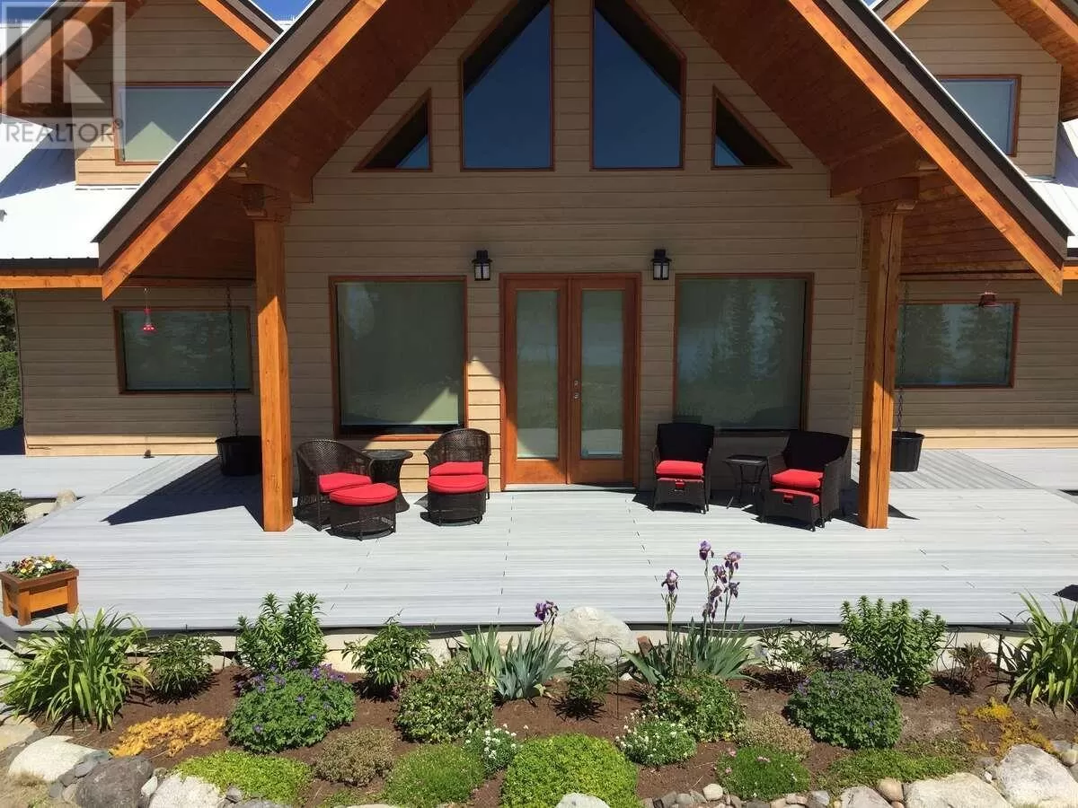 For more information, click the Brochure button. This exquisite 9.5-acre peninsula property on scenic Nimpo Lake has 1600 feet of lake frontage and 330 degrees of lake and mountain views from the two-storey post and beam home. The great room features cathedral ceilings and an open concept interior. The kitchen has granite counter tops, solid maple cabinets and stainless-steel appliances and is separated from the large dining room by a sit-up bar. The main floor primary bedroom has a walk-in closet and 5-piece ensuite bathroom. The mezzanineâs large library accesses 3 bedrooms and a 3-piece bathroom. The walkout basement has a gym and roughed-in washroom. The house is surrounded by a 1300 SF composite deck and well established perennial gardens with stone steps meandering down to the 290 SF dock and boat house. There is a 420 SF guest suite located above the two-car attached heated garage and workshop. The property has cell service and fibre-optic internet and is 15-minutes from the Anahim Lake Airport. (id:27476)