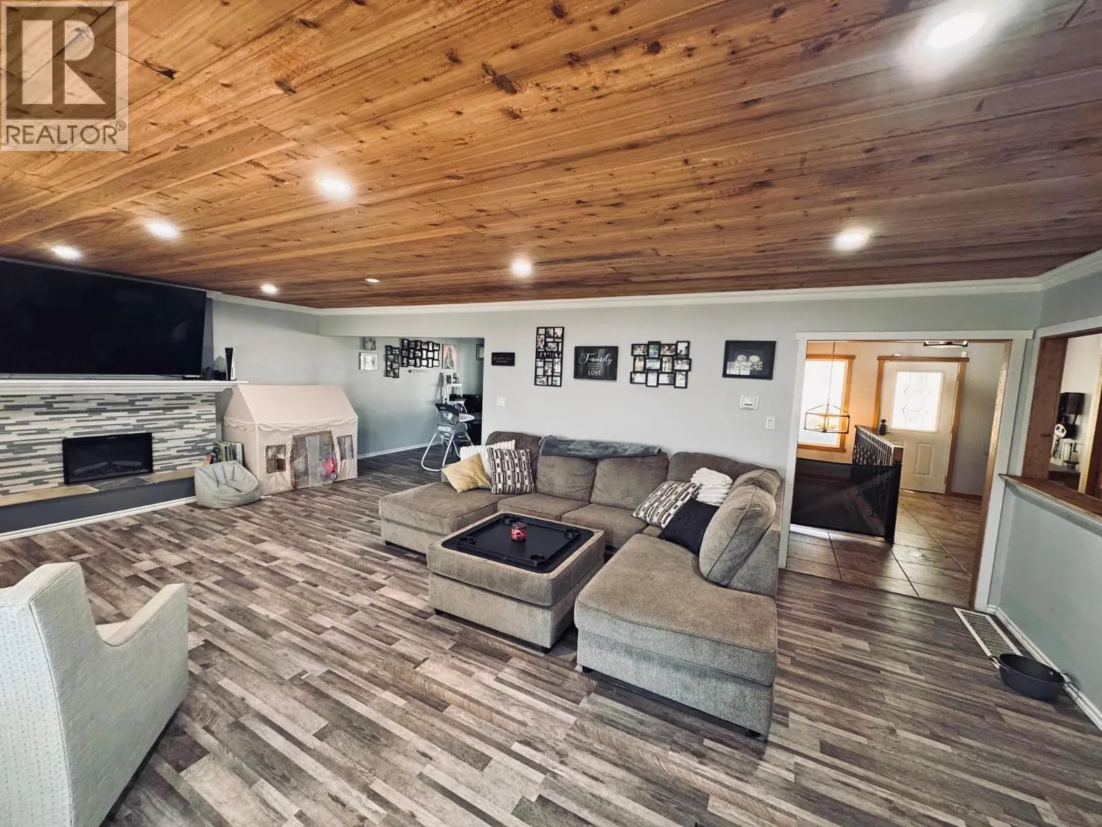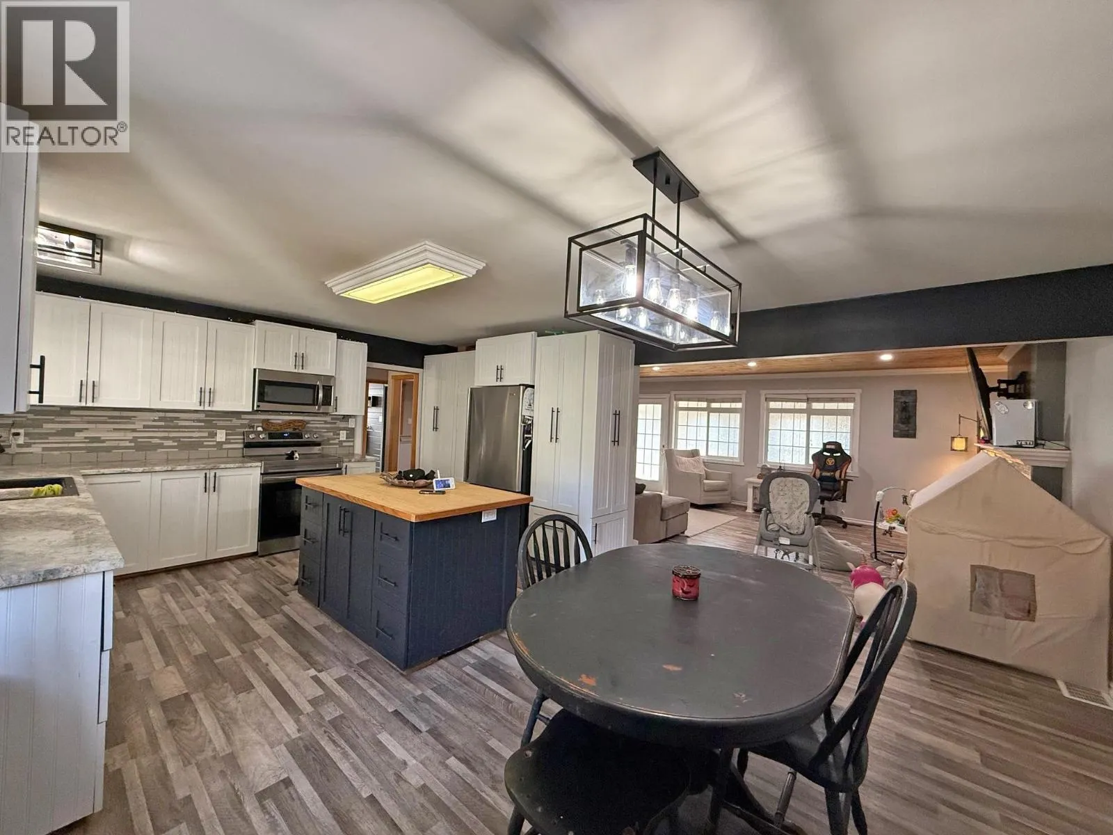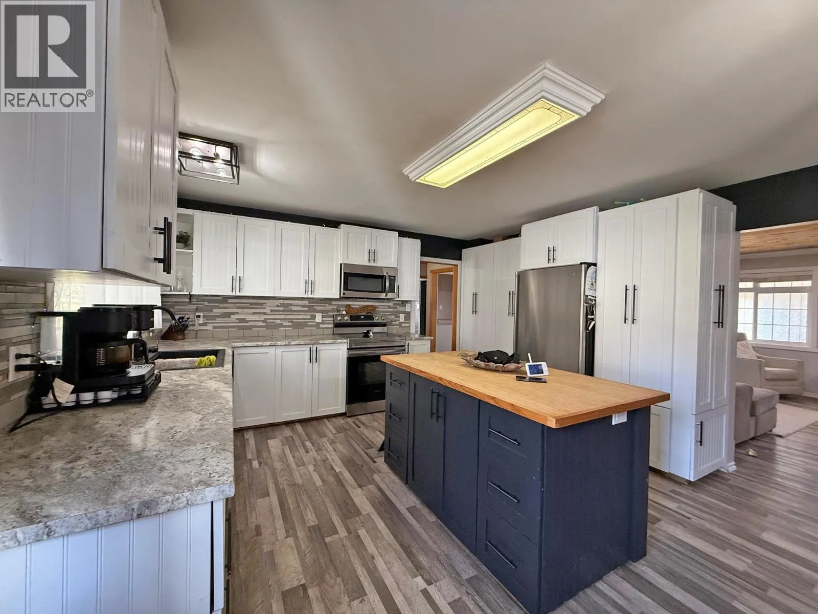 Welcome to this beautifully cared-for family home, ideally located in the heart of Williams Lake. Enjoy the convenience of being within walking distance to all levels of schools, the hospital, and local recreation centers. This modern home showcases numerous custom renovations, including updated flooring, stylish lighting, and a stunning, spacious kitchen that flows seamlessly into the bright living room. Upstairs, youâll also find a large sunroom overlooking the private backyard. The fully renovated basement (completed in 2023) features four bedrooms, including a master suite with a walk-in closet and a cozy natural gas fireplace, as well as a modern bathroom and a functional laundry room. Outside, the property offers a fenced backyardâideal for kids and pets + 2 powered storage sheds. (id:27476)