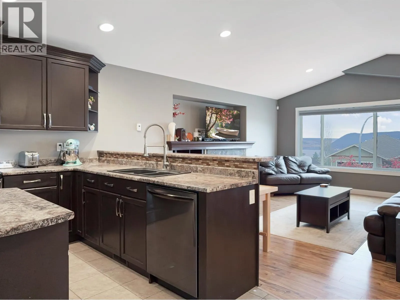 * PREC - Personal Real Estate Corporation. A view-facing main floor, open concept kitchen, and positioned on a nearly 10,000 sq. ft. lot makes this home a strong option for buyers seeking space, function, and location. The open main level features a kitchen with island and pantry, a bright dining area with yard access, and a living room with vaulted ceilings and natural gas fireplace. Three bedrooms on the upper level support family living, while the finished basement provides a large family room, extra bedroom, laundry, and a wide foyer ideal for gear and storage. The flat, fenced backyard offers rare in-town usability for pets, entertaining, or future upgrades. With a double garage, flat driveway, and quick access to trails, parks, and downtown, the home blends practical living space with a high-value lot and neighbourhood. (id:27476)