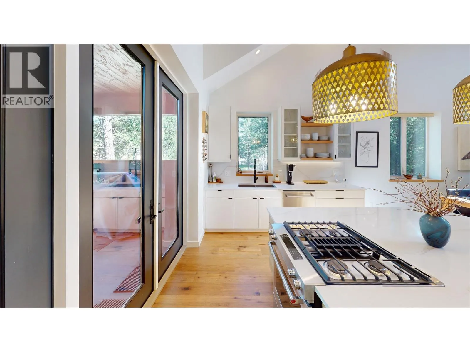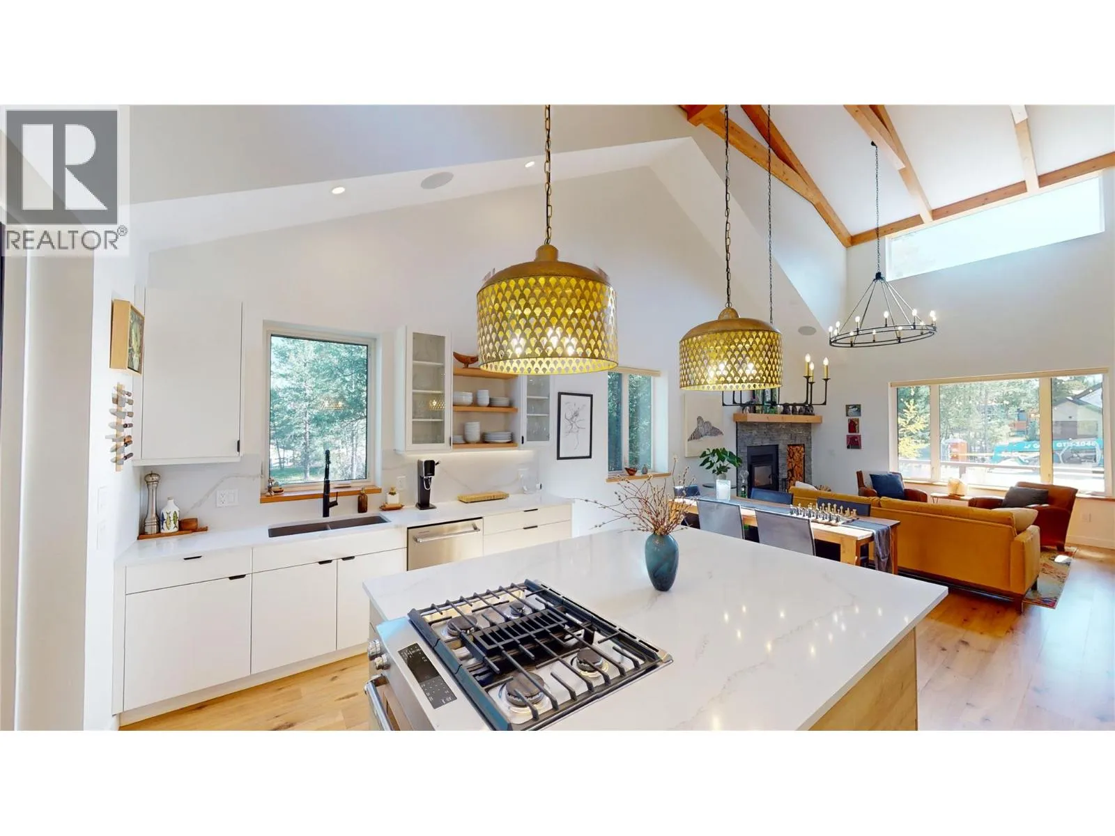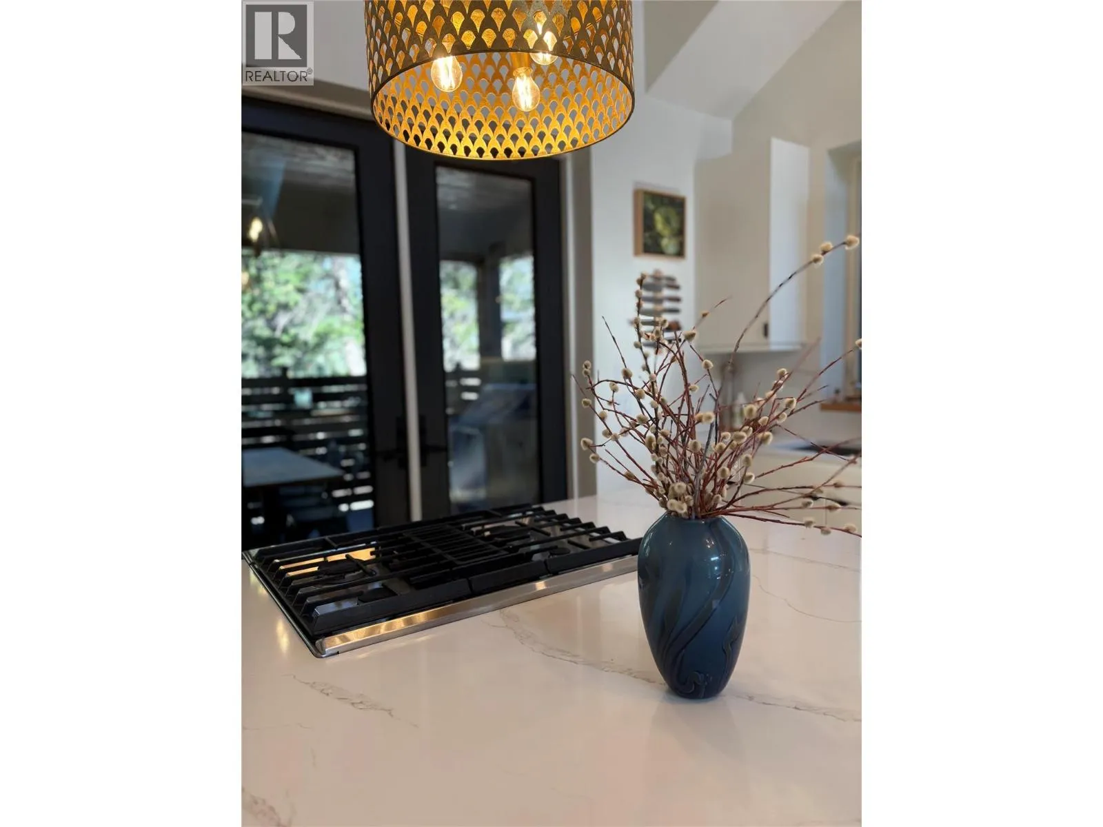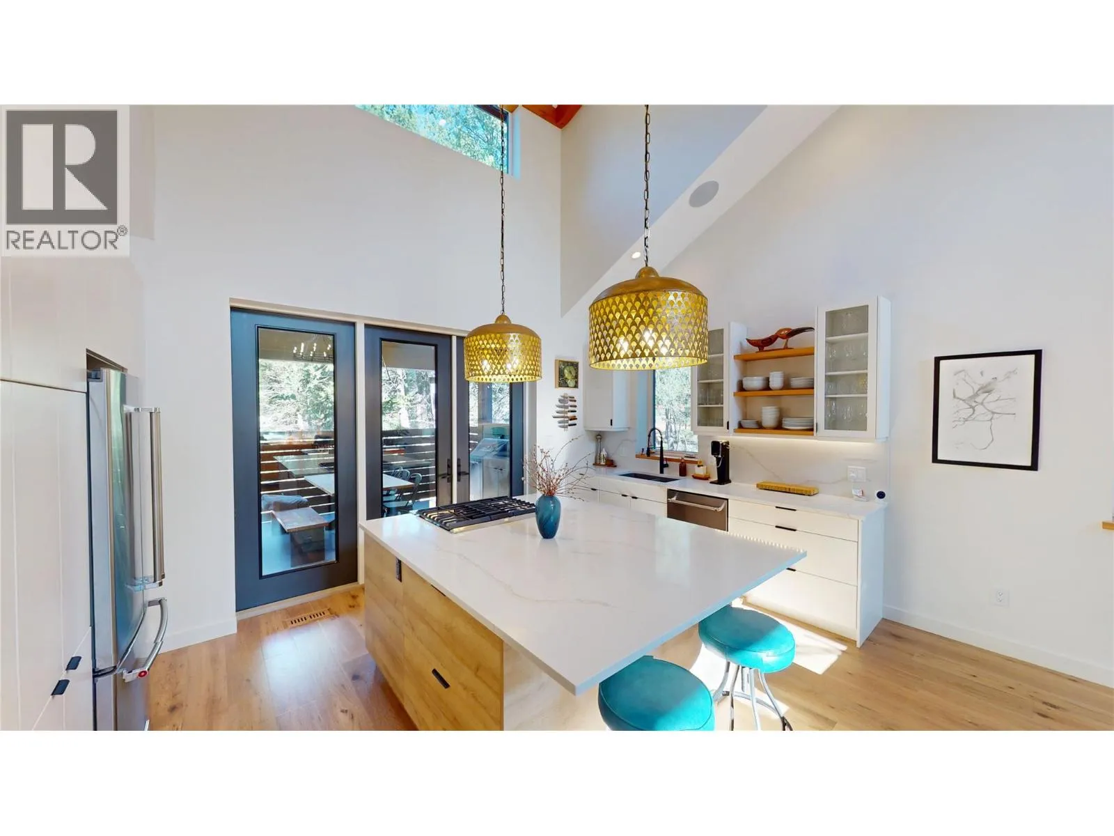 Discover this stunning, nearly-new Pedley Heights residence offering exclusive beach access and modern mountain living at its finest. Featuring three spacious bedrooms plus a versatile den that can serve as a fourth bedroom, this home blends comfort, craftsmanship, and style. The open-concept main floor is designed for effortless entertaining, with two sets of deck doors that extend your living space to a heated concrete patio. Overhead radiant heaters allow you to enjoy the outdoors throughout the year. Inside, vaulted ceilings with locally sourced custom wood beams and large windows fill the space with natural light. A sealed, high-efficiency fireplace with a fan creates the perfect spot to curl up with a book or a warm drink on cold winter nights. The generous primary suite offers private deck access and a bright, spa-inspired ensuite featuring heated floors, a rainfall shower with multiple showerheads, and direct access to the saltwater hot tub. The lower level includes two additional bedrooms, a full bathroom, a laundry room, and a family or recreation room with a custom wet bar that includes wood shelving, a dishwasher, a wine fridge, and a microwave. The oversized garage accommodates trucks and boats and features heated floors, a half bath, and a side gear room for all your equipment. Outside, you will find thoughtful details such as firewood storage for the fireplace and firepit, along with ample storage beneath the rear deck. The custom, low-maintenance landscaping showcases vibrant flowers, mature trees, rock features, and a sweeping rock wall firepit area. A full irrigation system keeps everything lush so you can spend more time enjoying the nearby beach and golf courses. Just steps from your back door, a path leads to the private community beach, playground, and pickleball and basketball courts. This is your opportunity to experience the best of the Columbia Valley lifestyle. (id:27476)