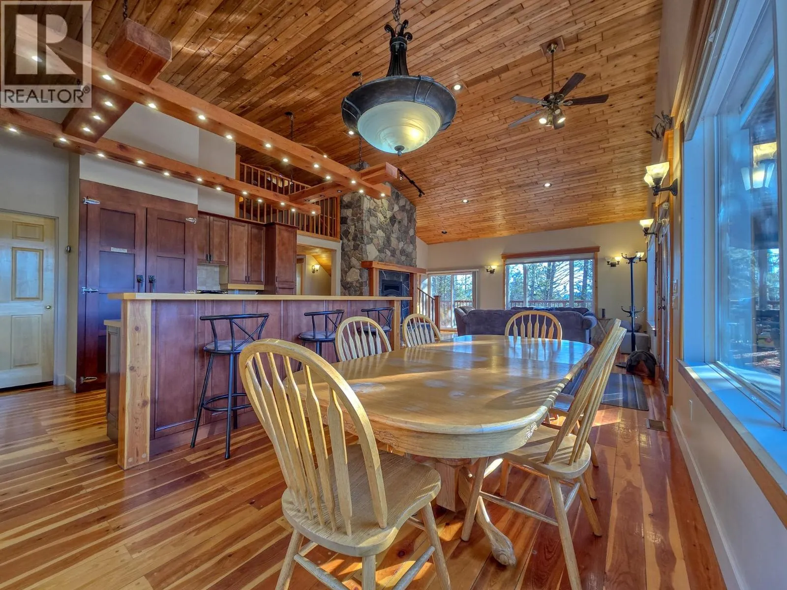 TIMBER RIDGE!!! The lake cabin you have been waiting for!!! Welcome to 4980 Timberside Place in Timber Ridge Phase 3. With stunning mountain views, this 2003 built eight bedroom + loft home is very close to the gated road down to the private and incredible Timber Ridge Beach and marina. Wrap around deck, lots of timeless natural materials with beautiful hardwood floors, open concept living/dinning/kitchen, cozy central wood burning fireplace. Four of the bedrooms have their own private ensuites and patio doors. Massive 0.43 acre treed lot offers lots of parking and outdoor space! An amazing layout and space for bringing the entire family or even several families together for fun and making memories! Being sold furnished and turnkey and priced below tax assessed value, this offers exceptional value and a great entry point into the Timber Ridge community- your head and heart can agree on this one! But don't hesitate... (id:27476)