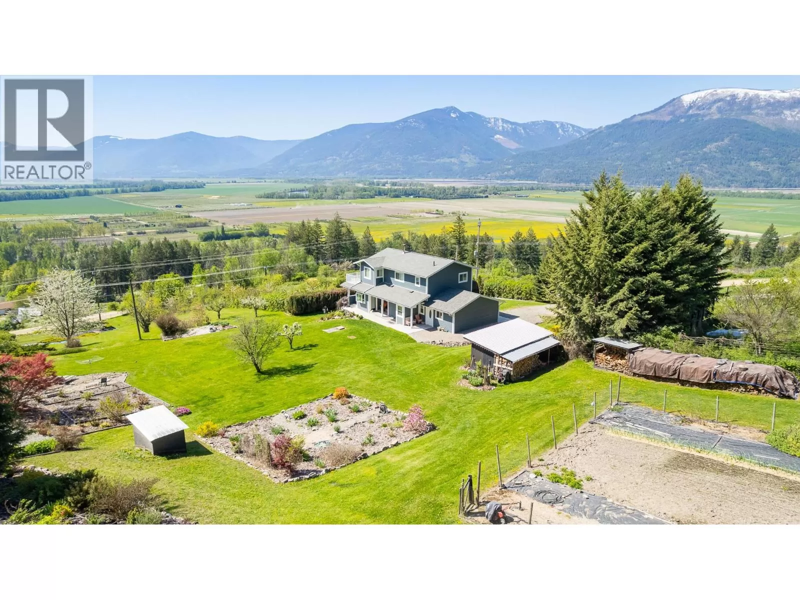 Incredible opportunity to purchase a beautifully renovated home, situated on 4.69 acres of property in Wynndel with absolutely stunning views of the Creston Valley. If you are a gardener or even just someone who loves being out in their yard this is one property that you do not want to miss. Sprawling lawns, perennial flower beds, a large fenced garden area and so much more. The upper sundeck or lower covered deck provide outdoor living space for your enjoyment as well. The Sellers had an entire makeover done on this home in 2017, it is updated and upgraded throughout. The main floor office can easily convert to another bedroom, the upstairs hobby room can be a nursery, and the primary bedroom is like a dream with a huge walk in closet, a corner nook to read or watch tv, and a 30' x 8' sundeck with unobstructed panoramic views in every season. The lower level of the home offers a workshop, cold room and plenty of storage. With 2 garden sheds and another workshop on the property, an attached single garage, and a lower level concrete pad outside the basement entry there is so much added outdoor space. This is a one of a kind property on the market right now, call your REALTOR and book a showing, imagine yourself living here (id:27476)