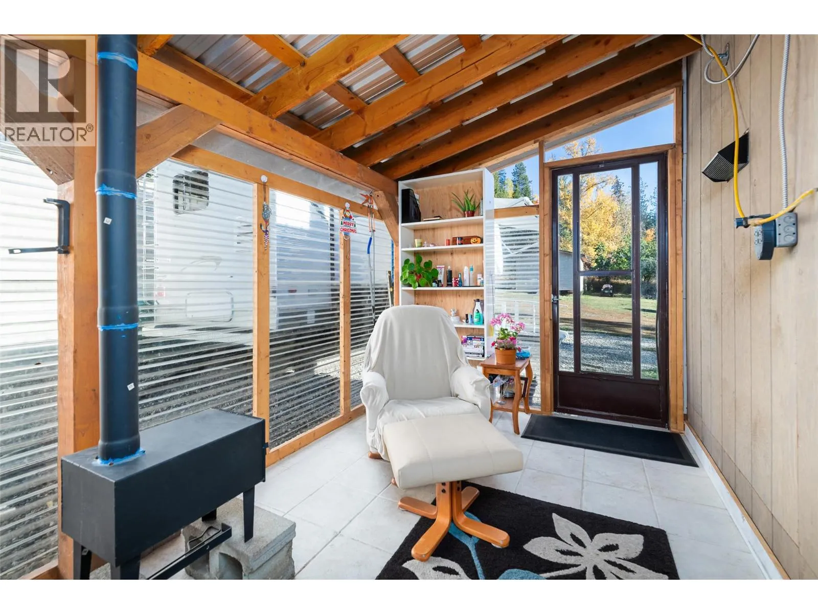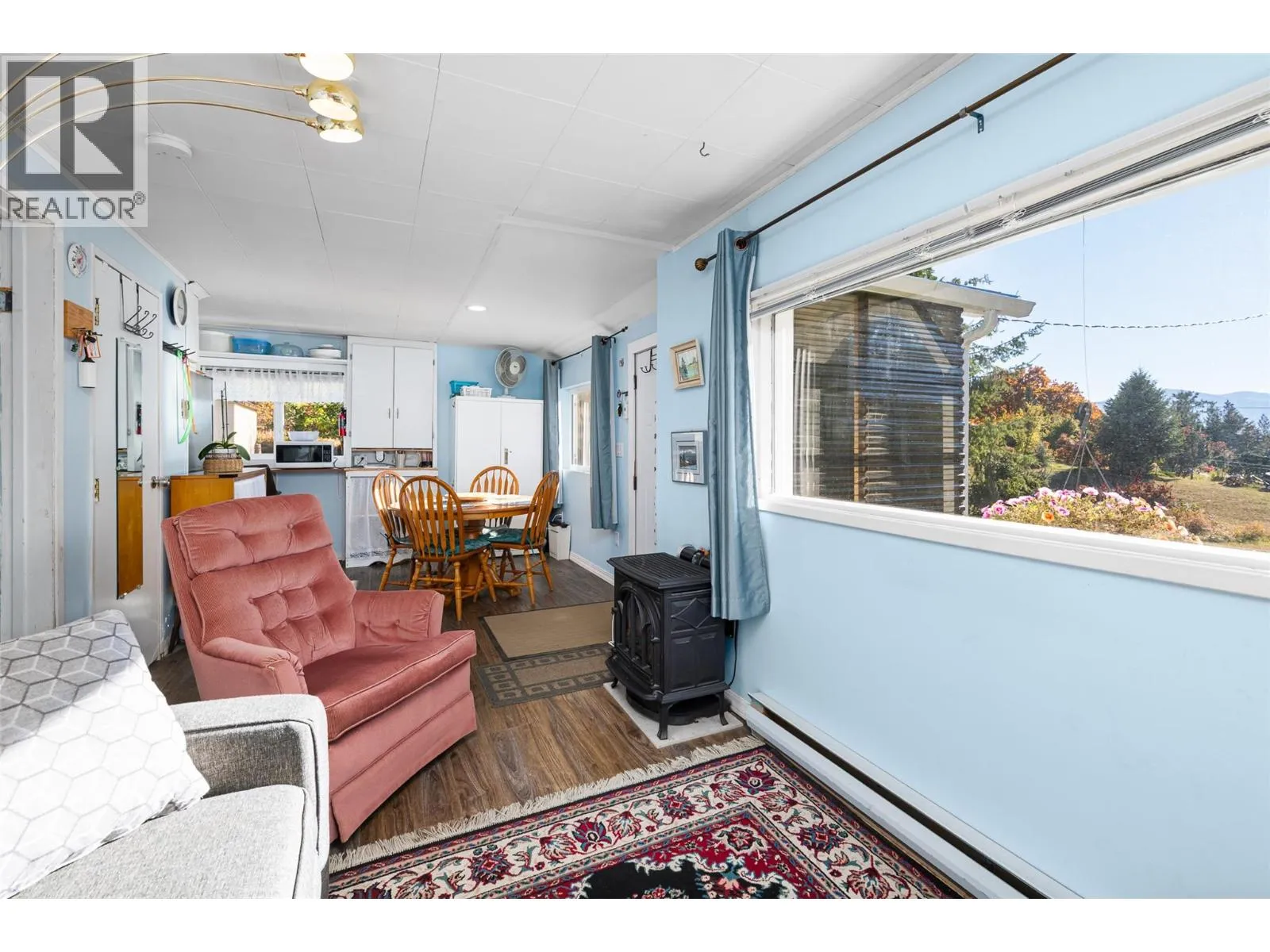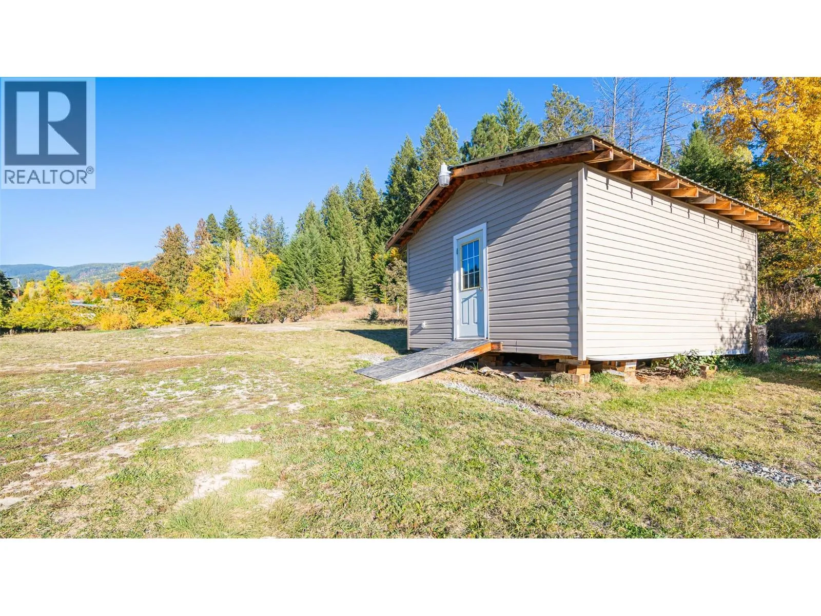 Beautifully maintained 1.5 acre lot with a cozy 1 bed 1 bath home. This property is a clean slate with established apple, pear, cherry, plum, hazelnut, and blackberries. Included are 2 sheds, a gazebo, and a sea can with electricity originally installed for welding. This home is perfect for a couple or single person who may want to delve into hobby farming. The bedroom has sliding doors that lead out to a covered, clean patio with tiled floors for extra living or storage space. The patio has a small charming wood stove for chilly summer nights. The house has a cottage-like stone chimney on the outside. Wynndel is a desirable location because of it's short drive to Creston and Kootenay Lake, while still being a rural community with plenty of space and beautiful views. (id:27476)