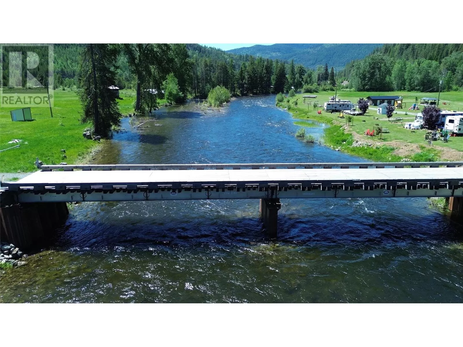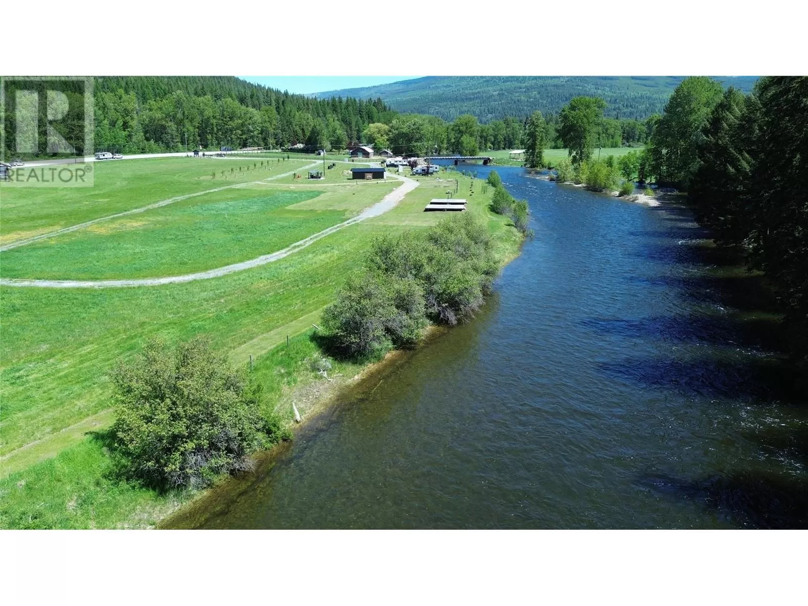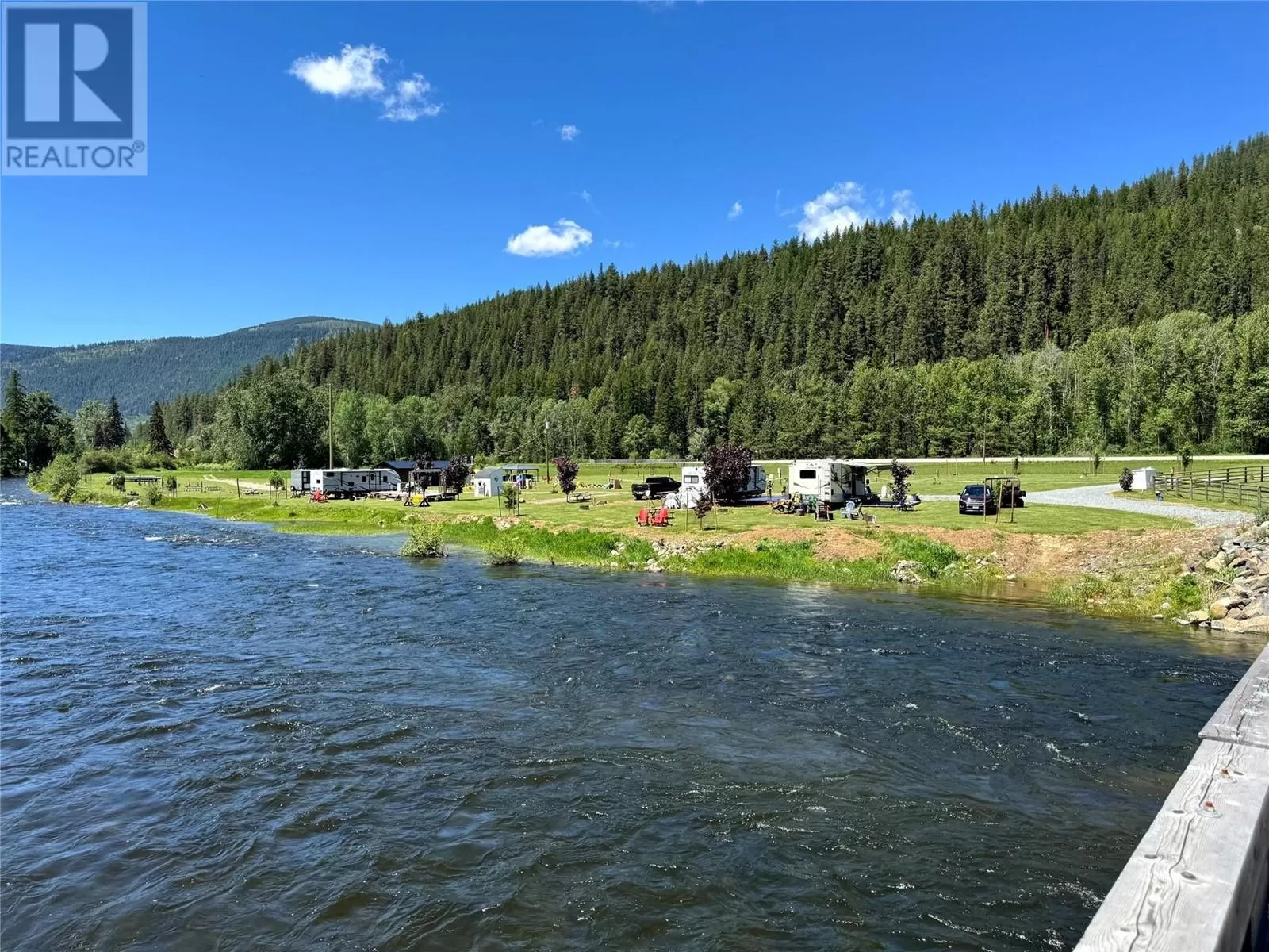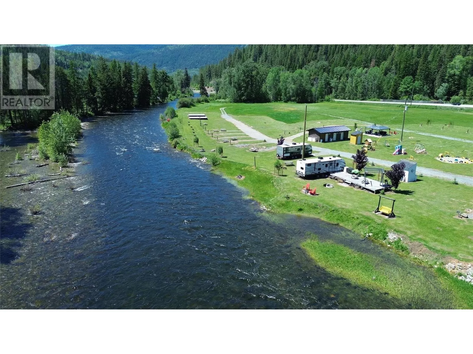 Riverâs Edge Ranch â 156 Acres on the Moyie River with No Zoning and RV Infrastructure Located just outside Yahk, BC in the heart of the Kootenays, this 156-acre property spans two separately titled parcels with frontage on the Moyie River. With no zoning and direct access from Highway 3/95, the land is highly usable and well-suited to a range of potential uses. The northern parcel is currently operating as a seasonal RV campground, featuring 7 full hook-up sites, 21 power/water sites, sani-dump, washroom and laundry building, playground, outdoor kitchen, and a covered timber-frame stage. Excellent highway visibility and a straightforward, functional layout support continued operation or expansion. A private highway-grade bridge crosses the Moyie River into the southern parcel, which includes open pasture, several older outbuildings, and an estimated 60 acres of merchantable timber. A 600-amp power service has been installed across the river, offering serious potential for future development. This is a rare opportunity to acquire large-scale, unzoned riverfront land in a prime location with existing infrastructure already in place. (id:27476)