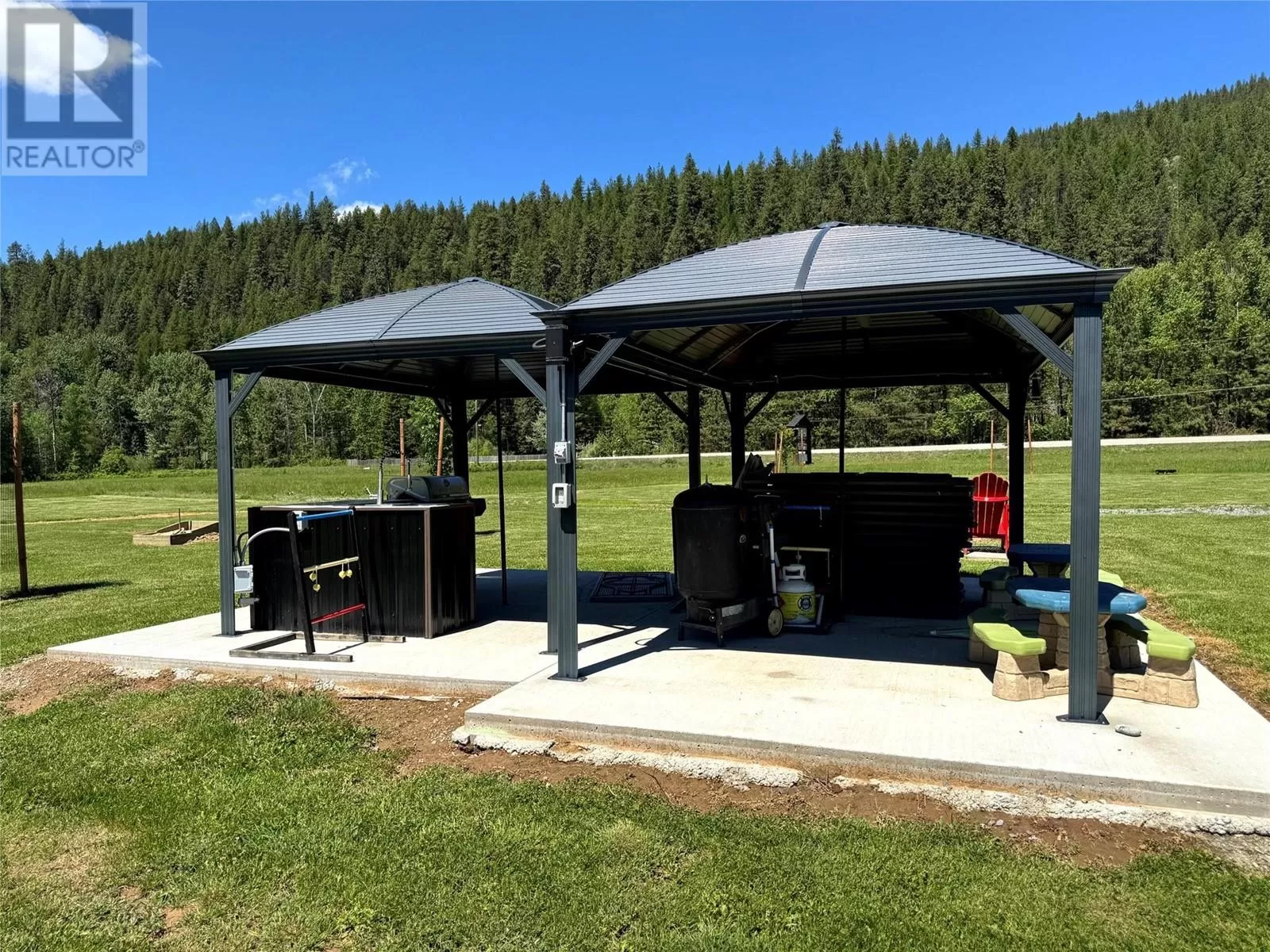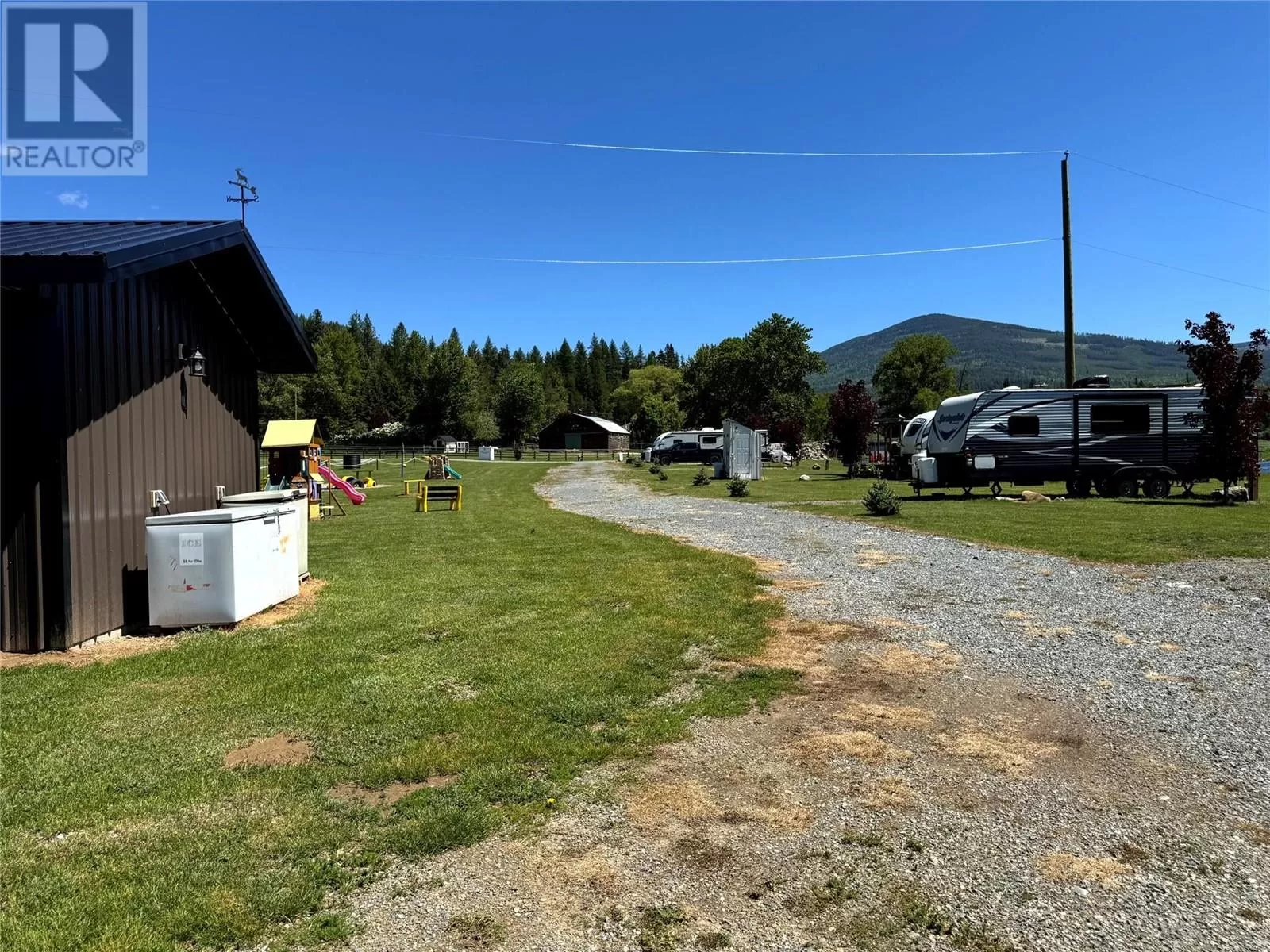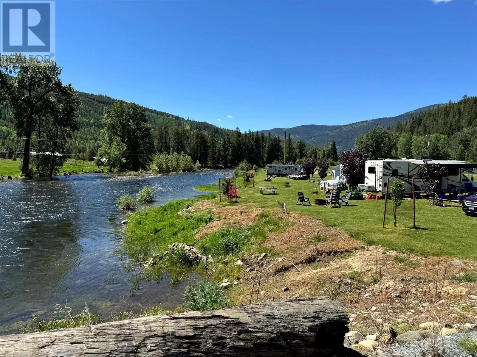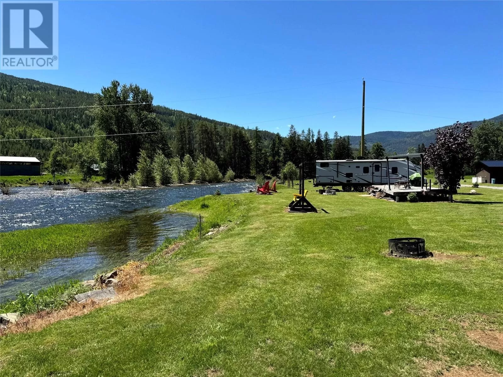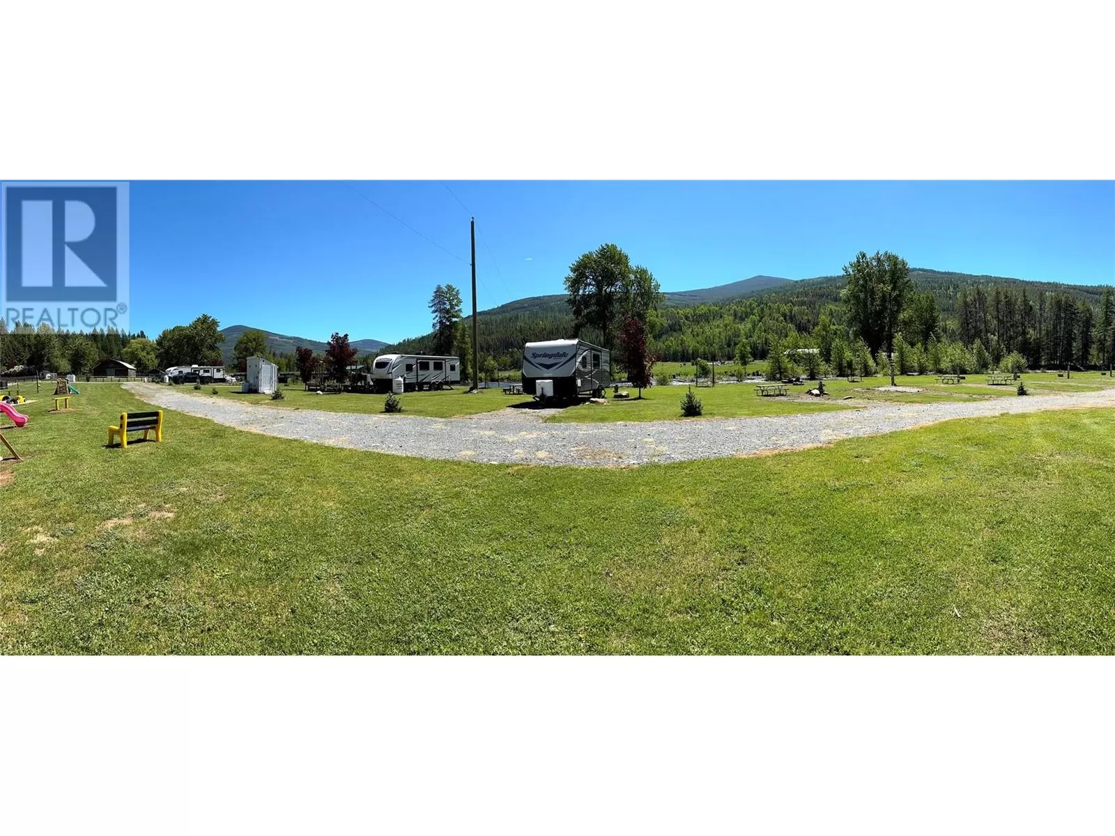 Riverâs Edge Ranch â 156 Acres on the Moyie River with No Zoning and RV Infrastructure Located just outside Yahk, BC in the heart of the Kootenays, this 156-acre property spans two separately titled parcels with frontage on the Moyie River. With no zoning and direct access from Highway 3/95, the land is highly usable and well-suited to a range of potential uses. The northern parcel is currently operating as a seasonal RV campground, featuring 7 full hook-up sites, 21 power/water sites, sani-dump, washroom and laundry building, playground, outdoor kitchen, and a covered timber-frame stage. Excellent highway visibility and a straightforward, functional layout support continued operation or expansion. A private highway-grade bridge crosses the Moyie River into the southern parcel, which includes open pasture, several older outbuildings, and an estimated 60 acres of merchantable timber. A 600-amp power service has been installed across the river, offering serious potential for future development. This is a rare opportunity to acquire large-scale, unzoned riverfront land in a prime location with existing infrastructure already in place. (id:27476)