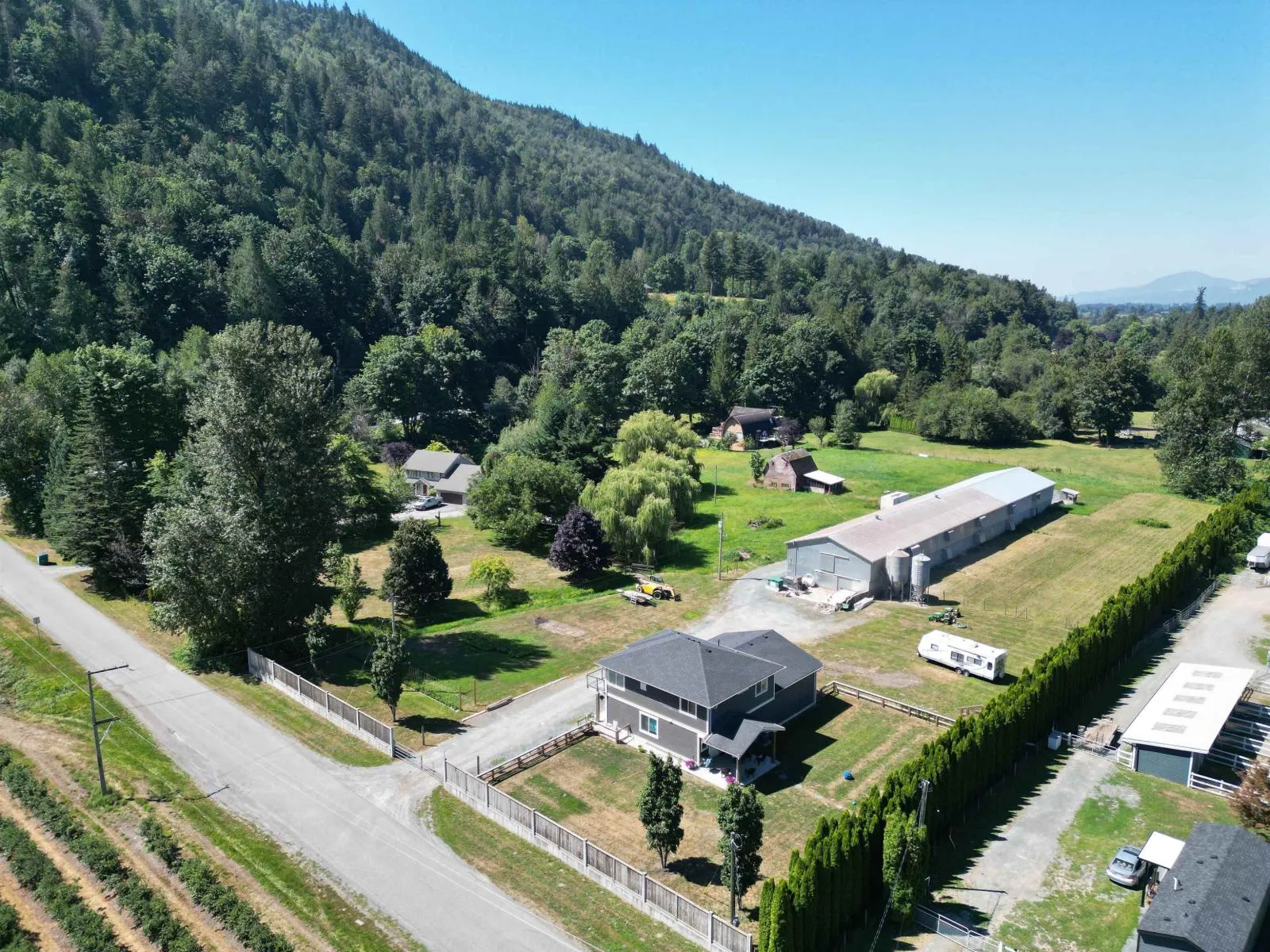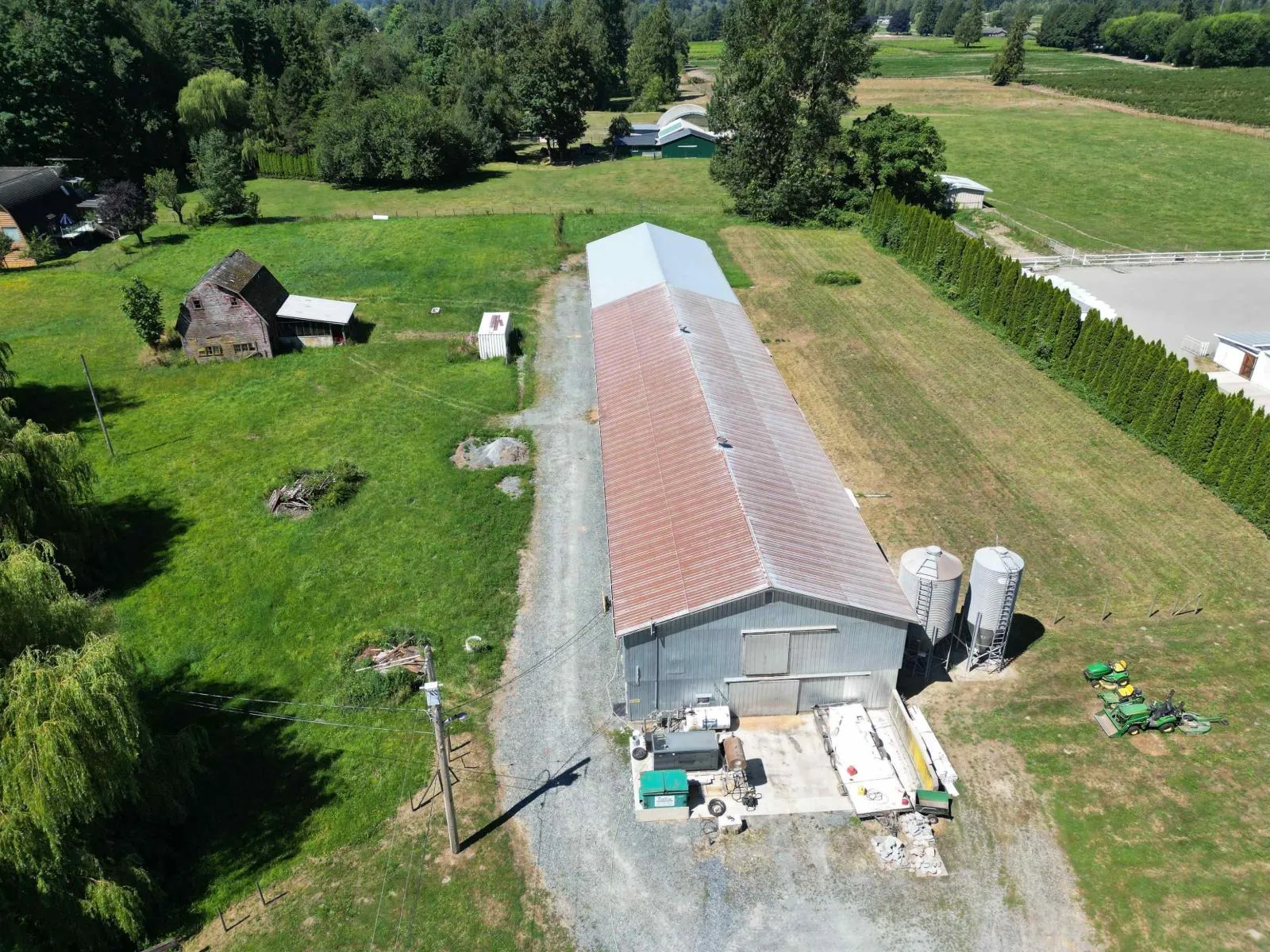 6.44 Acre Specialty Broiler Farm in Yarrow! This is a rare opportunity to acquire a well developed family-fit farm with infrastructure in place and room to grow in one of Chilliwack's prime agricultural areas. Out of the floodplain, but a walk to the river - sits this gorgeous parcel improved with 40' x 225'double-decker barn with automated feeding, watering, and ventilation systems on both levels, controlled by Phason. Power is backed by an 86 kW Winco diesel generator (2022) and new 300L diesel tank. 25' x 25' storage barn, two feed bins, and newly built 3,123 sq.ft. 3 bay shop add to the functionality of the farm. The main residence is a 2,153 sq.ft. two-storey home built in 1997, offering four bedrooms, three bathrooms, multiple living areas, and updated flooring in 2023. (id:27476)
