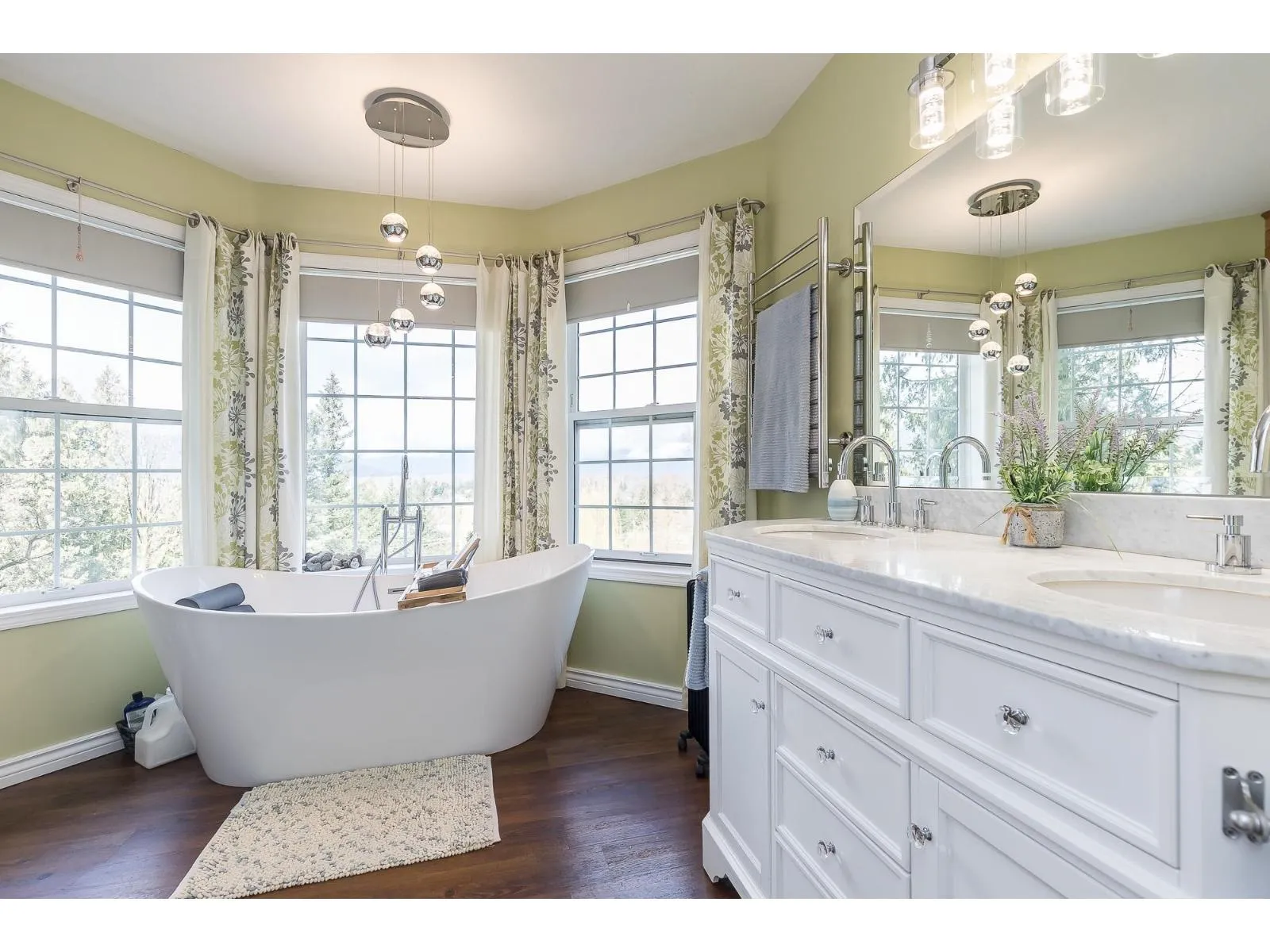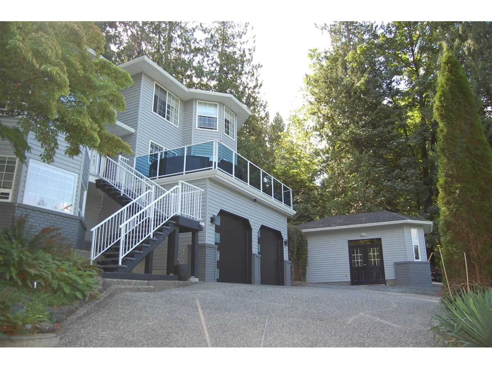 BREATHTAKING PANORAMIC MOUNTAIN & VALLEY VIEWS from most main rooms & large deck! Gorgeous updated 2941 sf 2 storey with basement & oversized double garage with high ceilings plus a detached 22x13 workshop (suite potential in workshop) on a beautiful private park-like 2.38 acre back to nature retreat in peaceful Majuba Hill - minutes from the small community of Yarrow. Gourmet kitchen with double ovens, gas cooktop, breakfast bar island & eating area flow into the family room with electric fireplace. The home features a traditional layout with a large living room & adjoining dining room. 3 spacious bedrooms up - primary boasts a wall of closets & a luxurious ensuite with dual vanities, separate shower & a soaker tub with Mountain views. Bright basement with games room or 4th bedroom & large hobby/storage room. On city water. New high-efficiency furnace & A/C (2022). A perfect blend of privacy, space, and breathtaking views"-book your showing today! (id:27476)