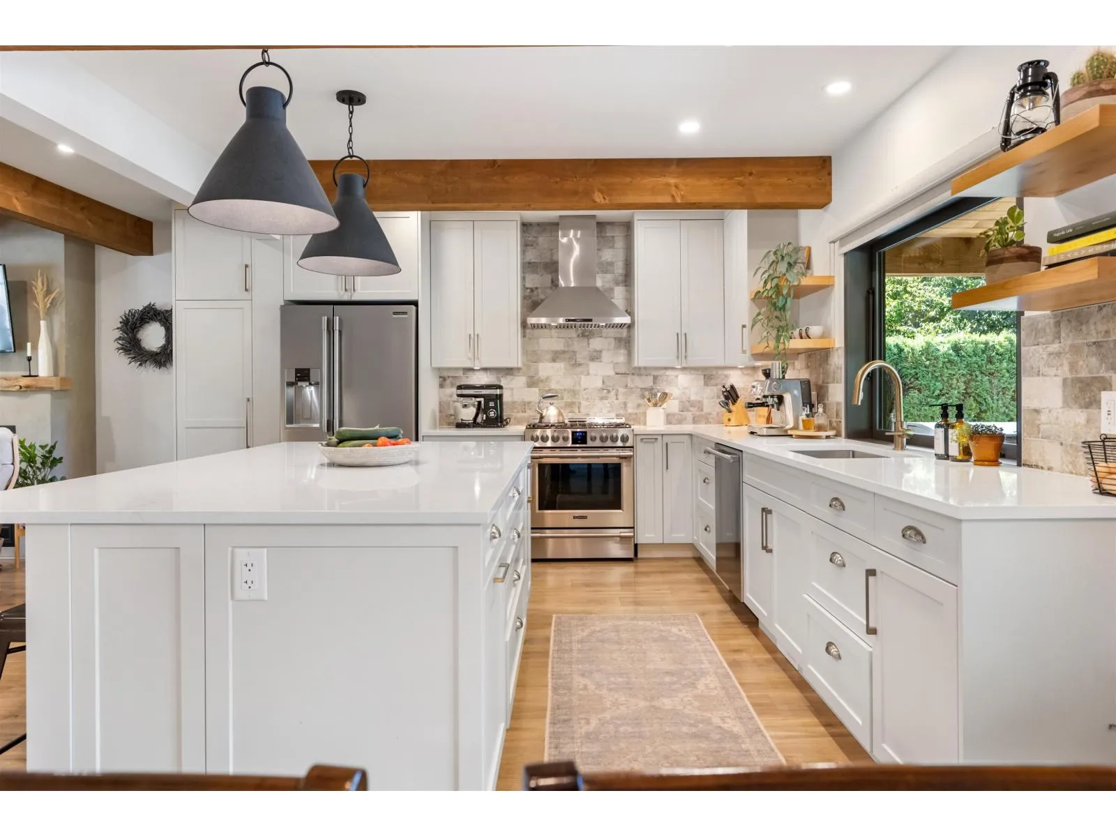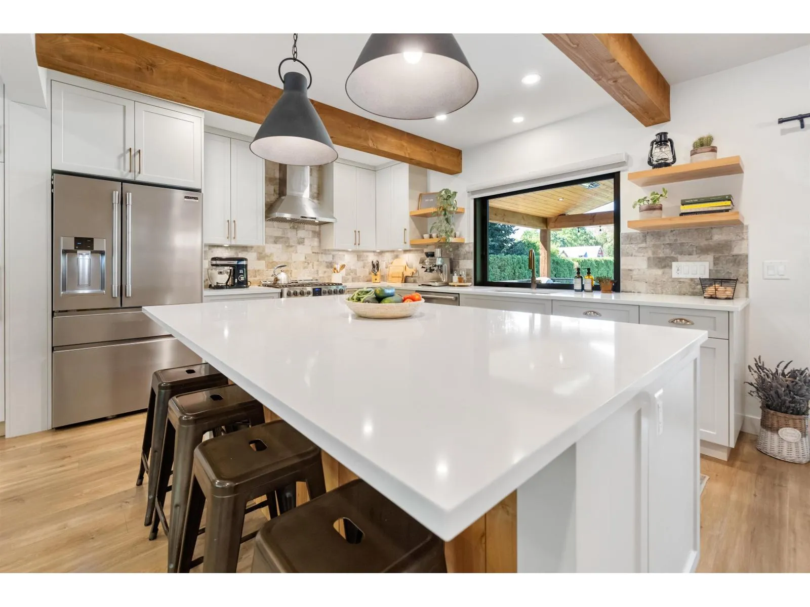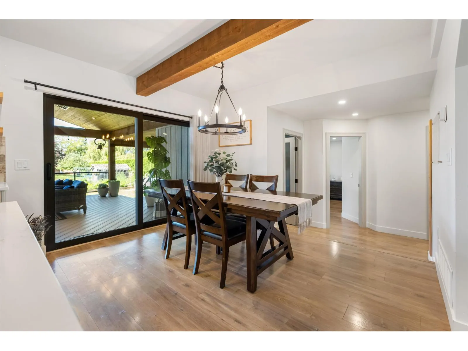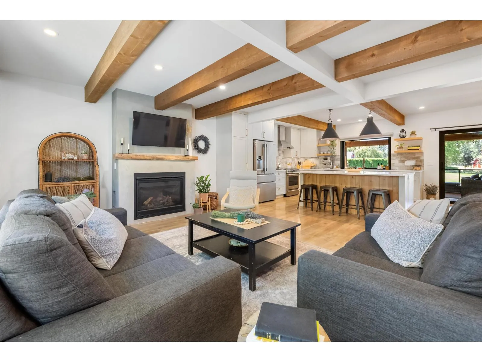 THE PERFECT HOBBY FARM SETUP EXISTS AND THIS IS IT! Tucked away south of Yarrow is this 2,900 sf freshly renovated home on over 2 acres. This home is character and charm. As you walk in you notice the attention to detail. Amazing kitchen with S/S appliances including gas stove, large island and pass through window to your covered deck. A main living area flows nicely together and accented with hardwood floors, beams throughout and a gas fireplace. The Primary Bedroom on the main has a Walk-in Closet and gorgeous Ensuite with double vanity, freestanding tub and shower. Upstairs are 2 more Bedrooms with vaulted ceilings and massive Rec Room. Step outside to the 900 sf covered deck fit with a hot tub. Fully fenced, including a barn, chicken coop and gentle creek flowing through. (id:27476)