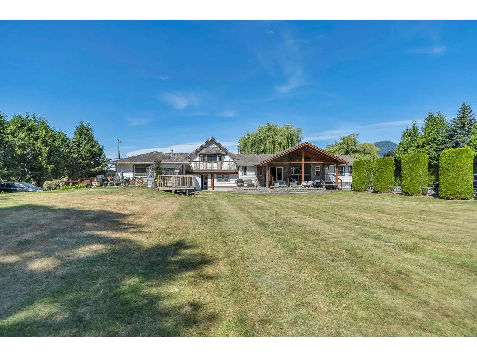 What An Estate! These ones rarely come available! 6.84 acre parcel - this compound offers a sprawling 3456 sq.ft. rancher with loft. 2 large, bright kitchens, 5 bathrooms, 4 bedrooms & separate laundry. Park-quality landscaping with manicured lawns, ample fruit trees, a beauty pond and a fire pit. Lots of covered parking and workshop space between the 2 large detached shops 25'X50' and 20'X50' plus the horse barn which has 5 stalls and a tac room. Also included is 2 power and water hook ups for RVs. * PREC - Personal Real Estate Corporation (id:27476)