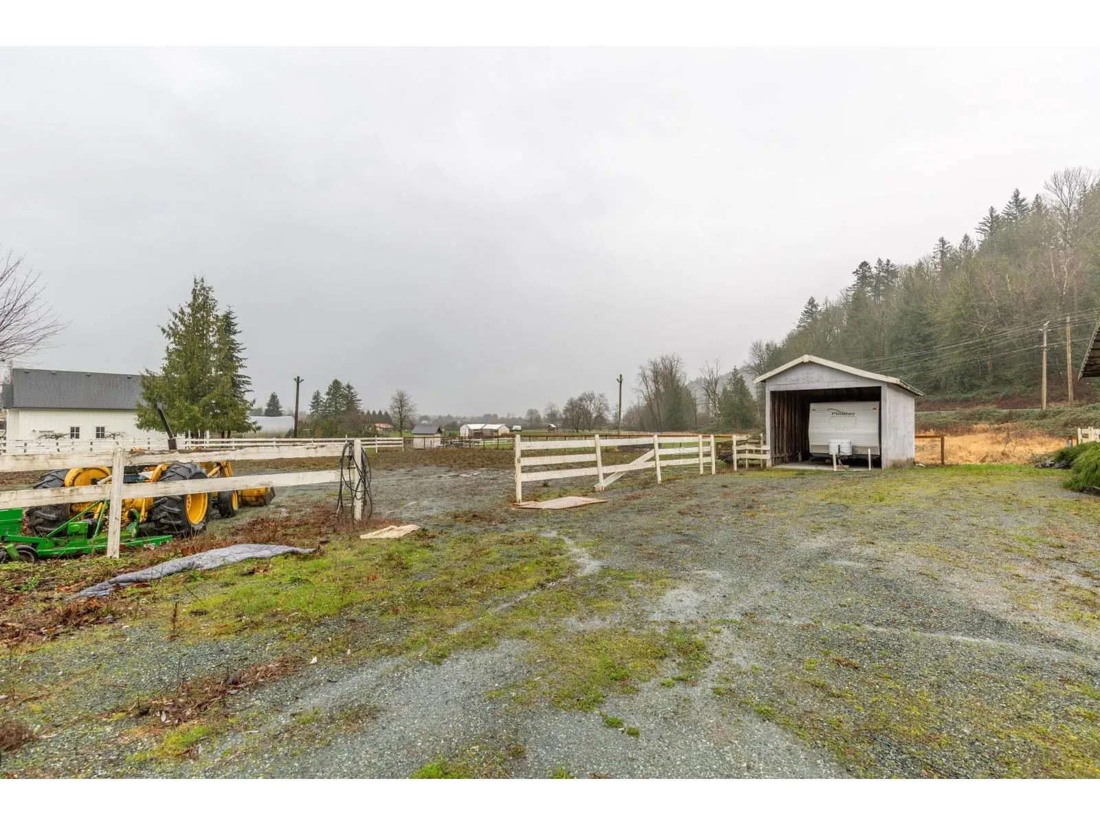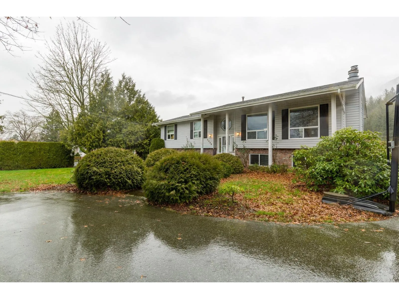 4.21 acres in the quiet community of Yarrow! This 5 bed / 3 bath 2,391 sq.ft. home offers a bright, open concept layout. The fully updated kitchen features quartz countertops, oversized island with bar fridge, soft close cabinetry, and new stainless steel appliances. The inviting living area includes a natural gas fireplace with built-ins, while the dining room opens to a large deck ideal for entertaining. Outdoor amenities include a covered patio, hot tub, and above ground pool. The basement has a separate entry, offering excellent in-law suite potential. 36' x 48' horse barn with six 12' x 11' box stalls, turnouts, floor mats, hay storage, and tack room, plus a 117' x 124' riding ring and fenced pasture. Separate business access driveway offers potential for a small boarding operation. (id:27476)
