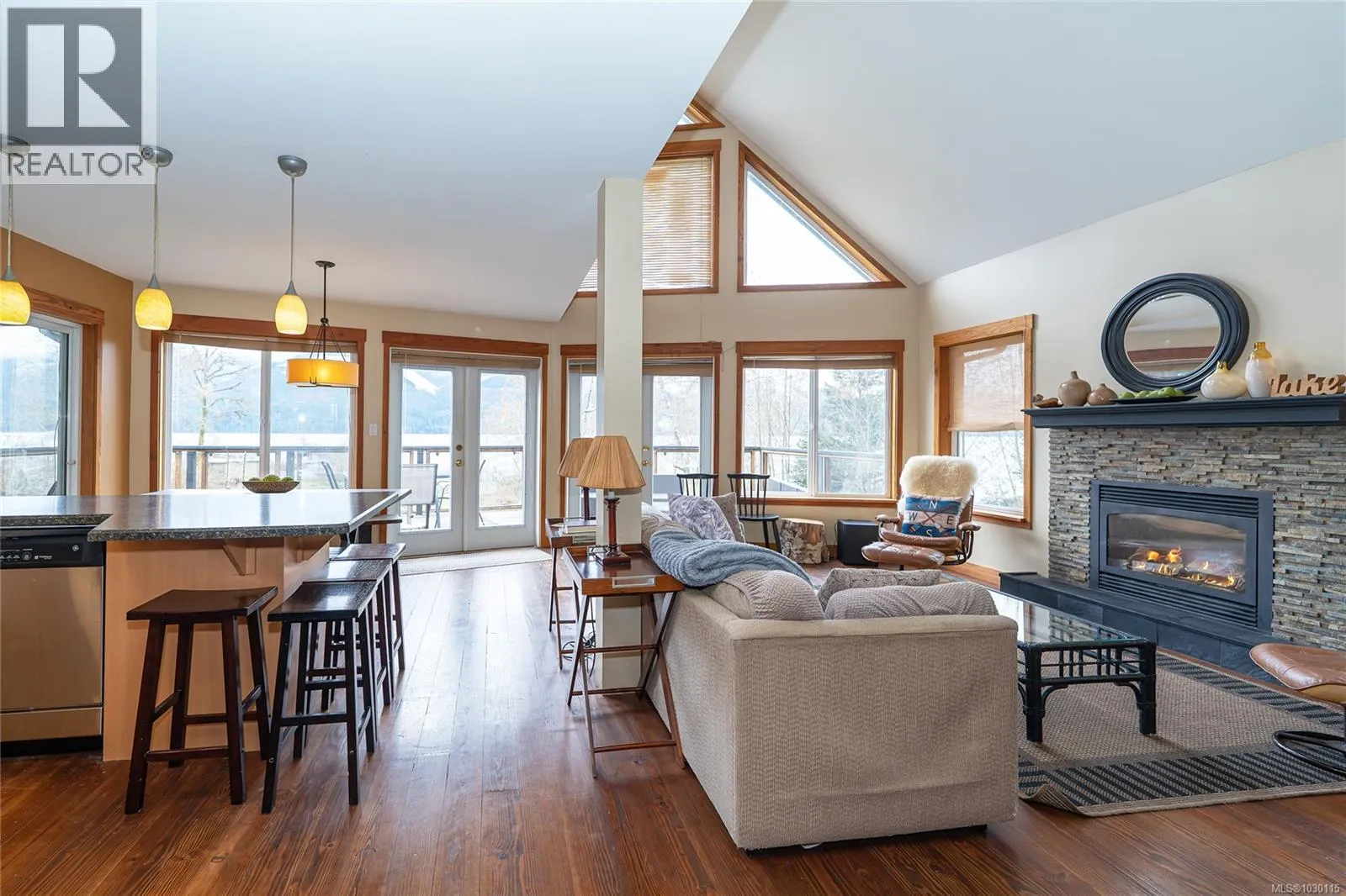 Set on 0.71 acre of walk-on waterfront at sought-after Cowichan Lake, this exceptional off-grid retreat offers a rare blend of comfort, character, and natural beauty. Built in 2007, the thoughtfully planned A-frame features 3 bedrooms, 2 bathrooms, a spacious loft, a fully equipped kitchen, and an inviting living area with an easy, open flow. A dramatic wall of windows captures stunning lake and mountain views while filling the home with natural light. Rich wood floors and trim enhance the rustic atmosphere, with timber sourced from a local Island mill. Solar panels and back-up generators power the home, while Starlink satellite keeps you connected. Outside, the south-facing deck, beach, private dock, swimming, and firepits create the ultimate lakefront escape. Enjoy it as a family getaway or investment, as the owners have operated it as a popular Airbnb with excellent income potential. It can also come fully furnished if interested. Book your showing today! (id:27476)