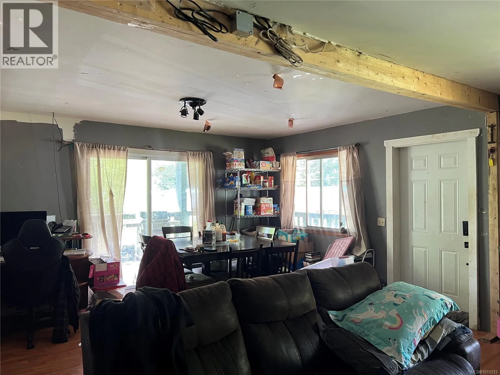 Discover a large family home in Zeballos, British Columbia! This 3-bedroom, 2-bathroom home offers spacious living areas with panoramic mountain views. Nestled in a serene neighborhood, the living and dining room have been opened up to create a large living area. Outside there is a partially fenced private backyard ideal for gatherings. Enjoy the tranquility of small-town living while being close to nature trails and outdoor adventures. This home is a haven for relaxation and creating lasting memories with loved ones. ALL MEASUREMENTS ARE APPROX. TLC is needed. SOLD 'AS IS WHERE IS' (id:27476)