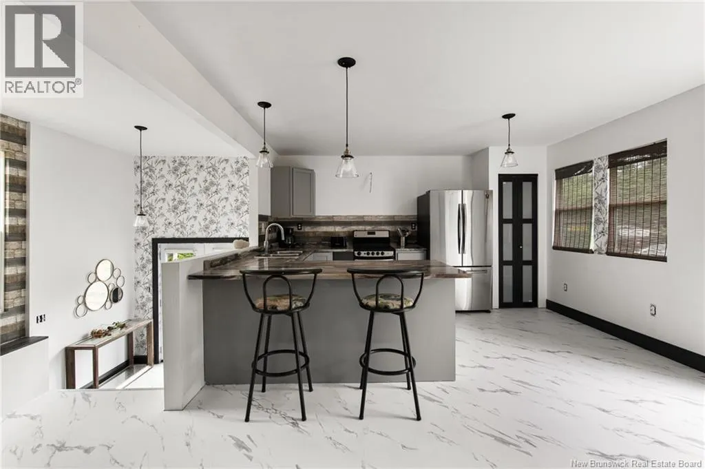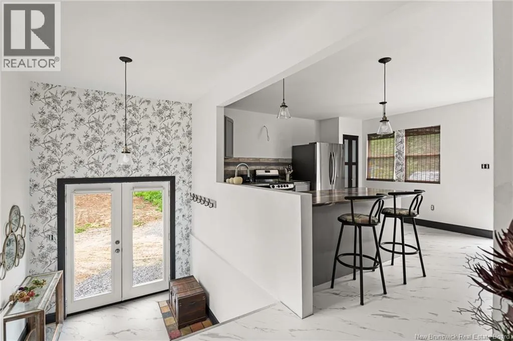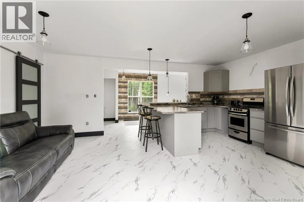 Off the Rte 126. Before Rogersville. Saint Marcel is on the left. Beautifully renovated bungalow is awaiting new owners!! Don't miss this one!! Upgrades include siding, metal roof, most windows, finished basement, electrical, plumbing,, flooring, 2 new bathrooms, kitchen, new septic system, well only 5 years old, concrete foundation. Large master with walk in closet, 3pc ensuite and laundry all on the main level. Open concept Kitchen, livingroom. Beautiful side entrance foyer to go on main level or to the fully finished basement with family room with woodstove, 4pc bath and potential to have another bedroom. There a still a few finishings touches to be complete by closing for example....front railings, foyer railings, bathroom taps etc. property goes directly to the river. Call for more details or to view (id:27476)