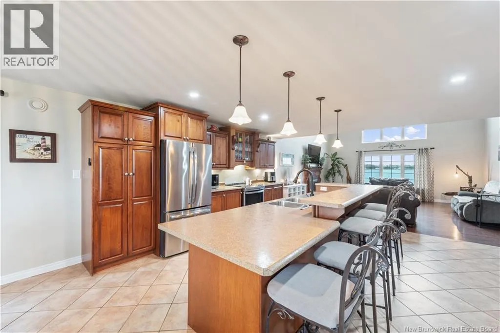 Civic # 79 Ch Pointe Du Mirage, Aldouane ** 2 DWELLINGS ** Welcome to 79 Ch. du Mirage, Aldouane an executive waterfront home perfectly positioned on a point, offering stunning panoramic views. The main level features a spacious foyer with ample closet space, a bedroom, a full bathroom with laundry area and storage, a bright living room with floor-to-ceiling windows and cathedral ceilings, and a beautiful kitchen with abundant cabinetry and a large island. This level also includes a formal dining area and access to your private backyard with your own private beach the ideal setting for entertaining or relaxing by the water. The upper level offers a cozy reading area, a large primary bedroom with private ensuite and walk-in closet, along with two additional bedrooms, a full bathroom, and a generous family room. A secondary structure on the property serves as a charming guest cottage, featuring a living room, kitchen, full bathroom, and two bedrooms. With its own separate power meter, it can be used as an in-law suite, guest quarters, or an Airbnb rental. The home also includes an attached two-car garage, perfect for storing vehicles, ATVs, snowmobiles, and more. Outdoors, enjoy water frontage and stunning views on both sides of this 1+ acre lot, offering the ultimate waterfront lifestyle canoe, kayak, or boat right from your own property. Conveniently located near restaurants, wharfs, convenience stores, clinics, and pharmacies. Sainte-Anne Hospital is just 20 minutes away, and Moncton 50 minutes. (id:27476)