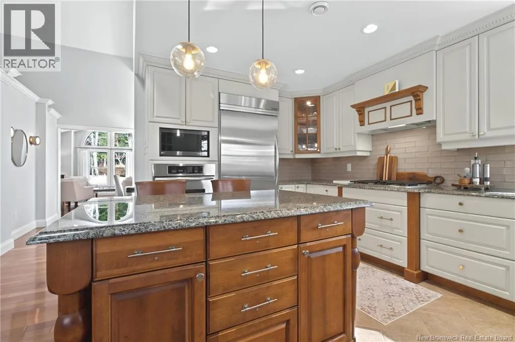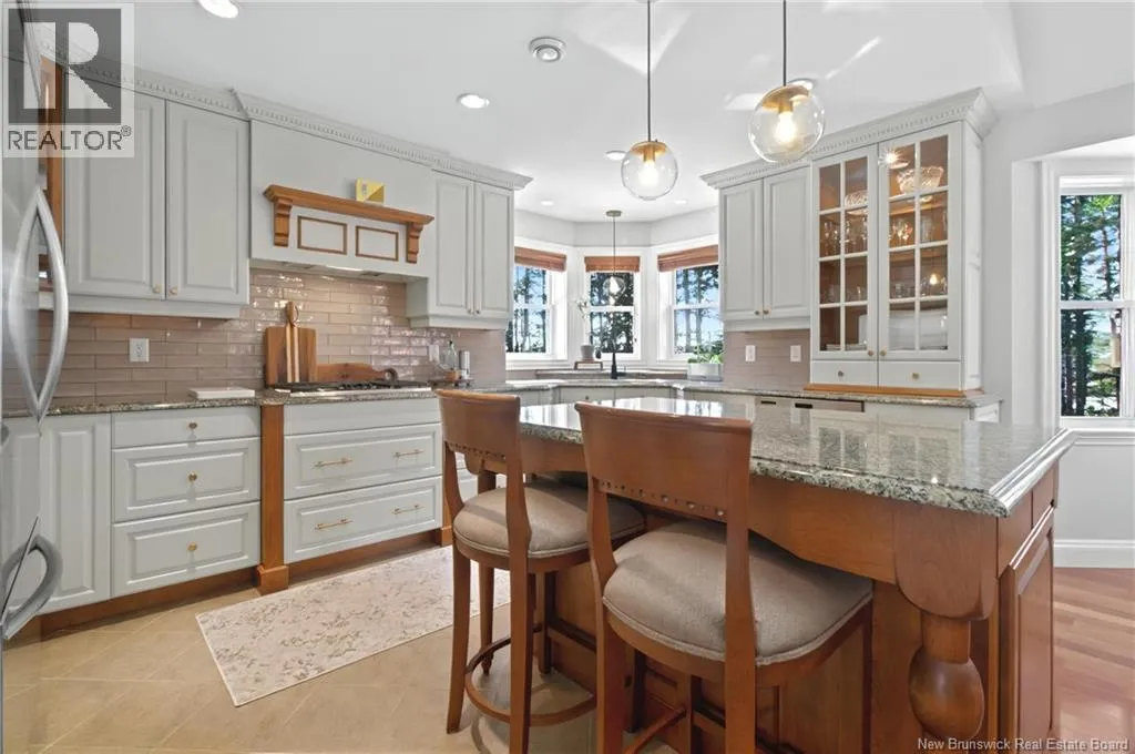 From Salisbury Road, turn onto Old Forest Road. Welcome to 84 Old Forest Road in Forest Brook Estates in Allison - an exceptional 3.2-acre luxury retreat offering ultimate privacy along the river with breathtaking sunrise and sunset views over the Petitcodiac. From the moment you arrive via the picturesque driveway, this one-of-a-kind property impresses. A 3-car attached garage plus two detached garages ensure plenty of space for vehicles, tools, and toys. Inside, the bright living room features cathedral ceilings, skylights, and a stunning floor-to-ceiling stone propane fireplace. The kitchen offers abundant cabinetry, stainless steel appliances, a center island, and flows into the dining room and breakfast nook - ideal for everyday living and entertaining. A cozy sitting room adds even more space to relax. The primary suite is a private escape with a double-sided fireplace, walk-in closet, patio doors to the back deck, and a spa-like ensuite with soaker tub and double vanity. The main level also includes a second bedroom, 4PC bath, and spacious laundry room. Downstairs youll find a large family/rec room, hobby room (currently a paint studio), bedroom, non-conforming bedroom, 3PC bath, cold room, and ample storage. Enjoy the screened-in porch, firepit, pond, and river views in your own backyard oasis. A new geothermal furnace (Nov 2025) includes a 10-year parts and labour warranty. Irrigation and security systems complete this rare offering. Book your private viewing today! (id:27476)