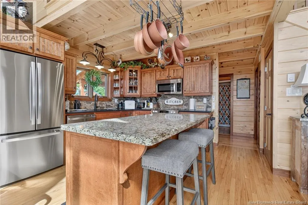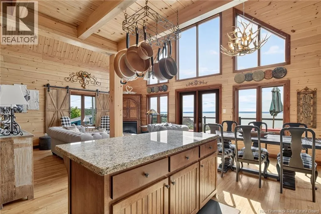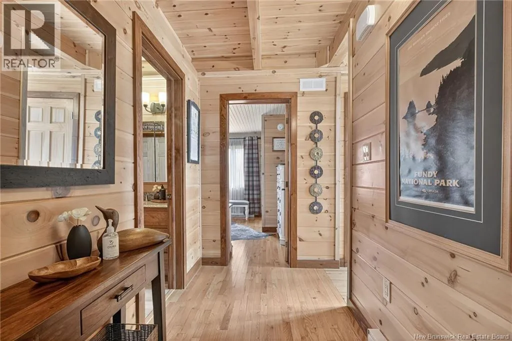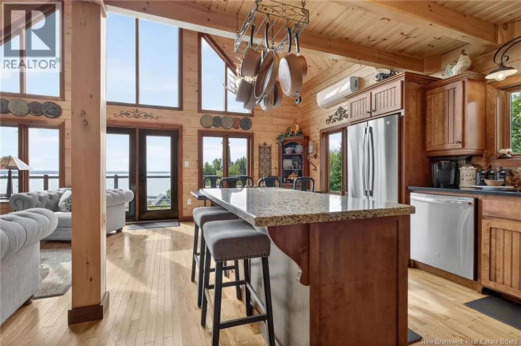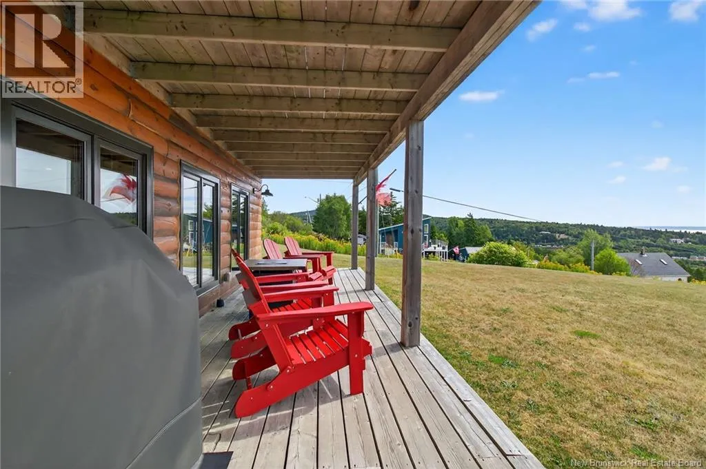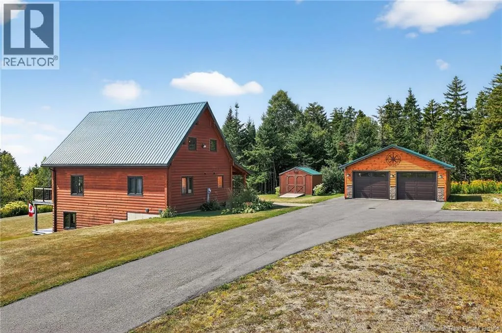 Up the hill on School st. Home to the left. *** INCREDIBLE VIEWS OF THE BAY OF FUNDY // 4 BEDROOMS and 3.5 BATHROOMS // OVER 1.5 ACRE LOT // GREAT POTENTIAL AS A SHORT-TERM RENTAL***Welcome to 127 School St. in Alma NB! This log chalet-style home BUILT IN 2018 offers breathtaking views of one of the 7 NATURAL WONDERS of NORTH AMERICA the BAY OF FUNDY. It provides a warm, inviting atmosphere with natural surroundings and privacy, yet close to everything Alma has to offer. Inside, the home features a main-floor bedroom, main floor laundry, hardwood floors and two 12-light antler chandeliers (2022) in the great room. The updated kitchen (2024) showcases QUARTZ/GRANITE COUNTERTOPS and high-end STAINLESS APPLIANCES (20222025), creating a bright, modern space. A MINI-SPLIT HEAT PUMP ensures year-round comfort, while the WALKOUT BASEMENT adds flexibility. The property includes: a WHOLE-HOME KOHLER PROPANE GENERATOR, a UV water system, a Level 2 EV charger (2024) and much more. Outdoor living features 3 patios/decks (one with glass panels), manicured perennials and areas to enjoy the views. Also included are an insulated oversized 2-car garage with half bath, storage shed and updated exterior lighting (2022). Located just 1.5 km from Fundy National Park, about 1 km from the BEACH and restaurants and steps from SNOWMOBILE AND OFF-ROAD TRAILS; this property offers the perfect blend of comfort, convenience and natural beauty! Book your private showing today and see all this ALMA GEM has to offer! (id:27476)