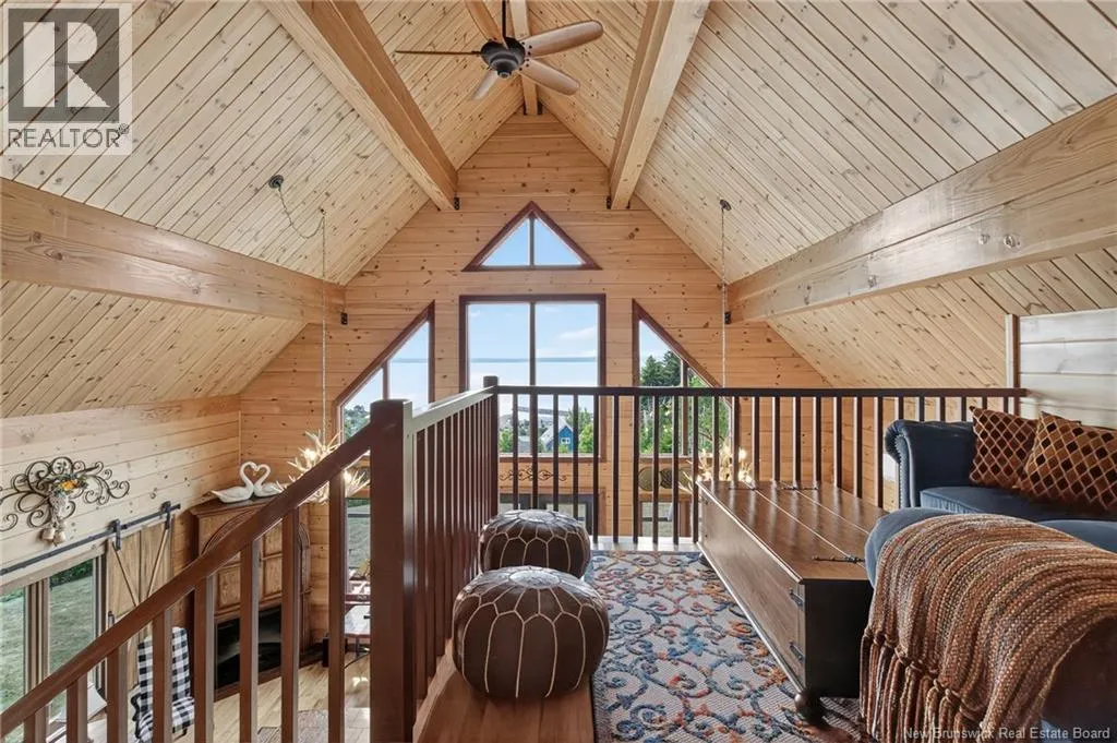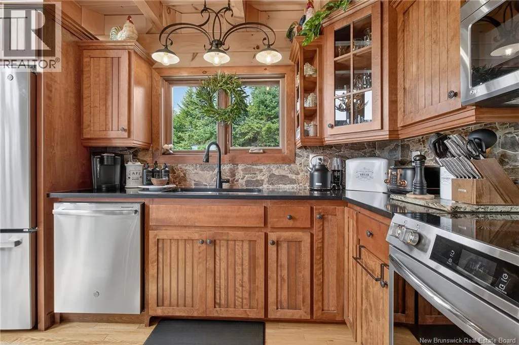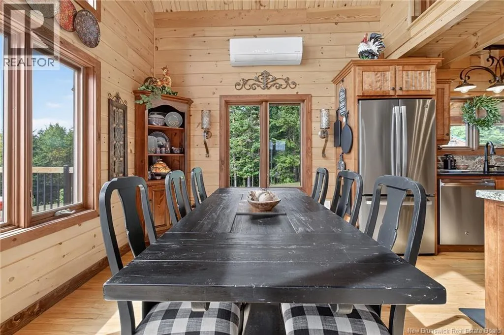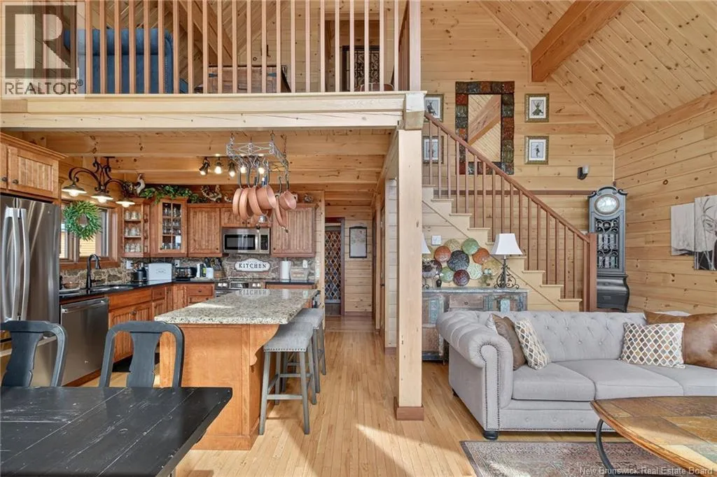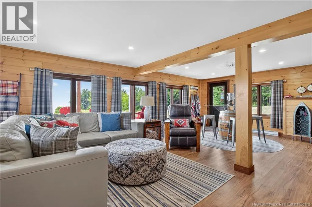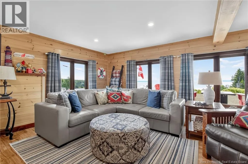 Up the hill on School st. Home to the left. *** INCREDIBLE VIEWS OF THE BAY OF FUNDY // 4 BEDROOMS and 3.5 BATHROOMS // OVER 1.5 ACRE LOT // GREAT POTENTIAL AS A SHORT-TERM RENTAL***Welcome to 127 School St. in Alma NB! This log chalet-style home BUILT IN 2018 offers breathtaking views of one of the 7 NATURAL WONDERS of NORTH AMERICA the BAY OF FUNDY. It provides a warm, inviting atmosphere with natural surroundings and privacy, yet close to everything Alma has to offer. Inside, the home features a main-floor bedroom, main floor laundry, hardwood floors and two 12-light antler chandeliers (2022) in the great room. The updated kitchen (2024) showcases QUARTZ/GRANITE COUNTERTOPS and high-end STAINLESS APPLIANCES (20222025), creating a bright, modern space. A MINI-SPLIT HEAT PUMP ensures year-round comfort, while the WALKOUT BASEMENT adds flexibility. The property includes: a WHOLE-HOME KOHLER PROPANE GENERATOR, a UV water system, a Level 2 EV charger (2024) and much more. Outdoor living features 3 patios/decks (one with glass panels), manicured perennials and areas to enjoy the views. Also included are an insulated oversized 2-car garage with half bath, storage shed and updated exterior lighting (2022). Located just 1.5 km from Fundy National Park, about 1 km from the BEACH and restaurants and steps from SNOWMOBILE AND OFF-ROAD TRAILS; this property offers the perfect blend of comfort, convenience and natural beauty! Book your private showing today and see all this ALMA GEM has to offer! (id:27476)