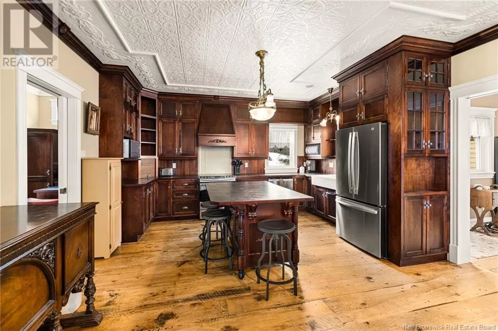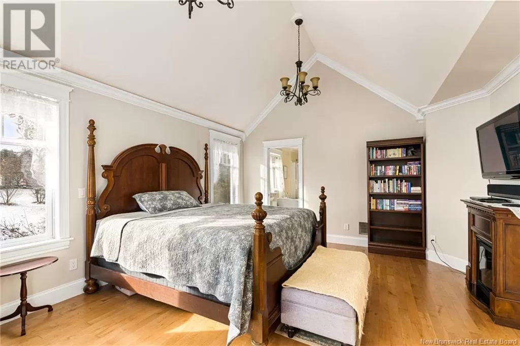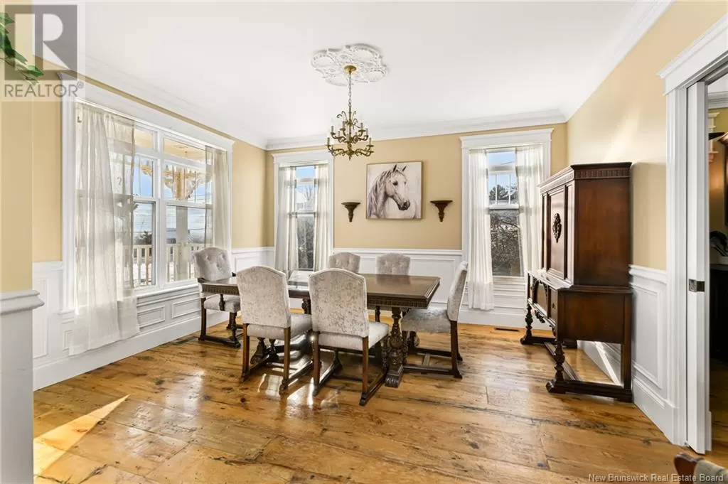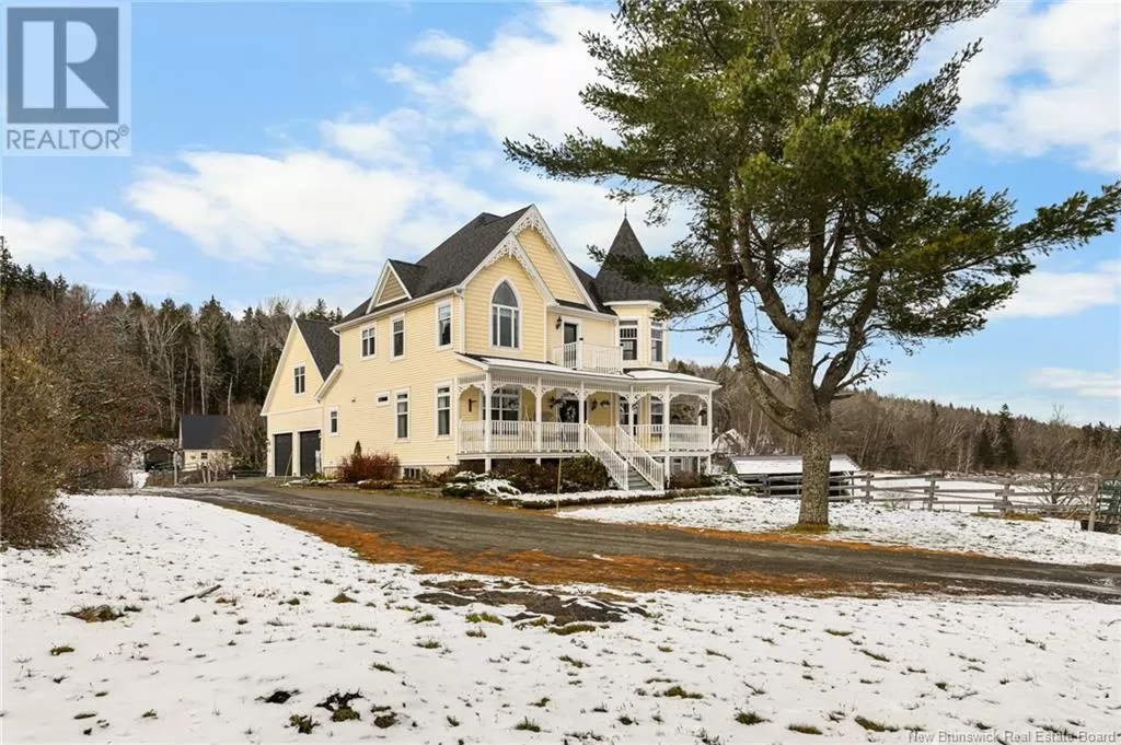 Take Gorge Rd., right onto Ammon Rd, Civic #129 is on your left. ELEGANT VICTORIAN HOME & EQUESTRIAN PARADISE perfectly poised on nearly 7 acres of land overlooking the City of Moncton! This home is only 11 years old, and was built to the highest quality with no detail spared in craftsmanship. Offering ample character, a discerning taste resonates throughout with extra wide reclaimed 100 year old pine flooring, a true tin ceiling, wainscoting, and so much more! The wrap around front veranda invites you into the front foyer featuring a grand staircase and 9ft ceilings, expansive living room with an impressive propane fireplace, a cozy den/study, lavish kitchen with floor-to-ceiling cabinets and centre island. The adjacent butler's pantry connects to a bright formal dining room. Ascend the staircase, the double French doors open to a beautiful master bedroom with cathedral ceilings, 4pc ensuite bath complete with claw foot tub and walk-in closet. Two additional bedrooms, one atop a turret with stunning views of the property! 4pc family bath and laundry complete this level. The bright downstairs is tasteful with a family room and walk-out basement, a 4th bedroom, 3pc bath, exercise area, craft space and storage room. Without failing to mention, a quaint Juliette balcony, heated tile flooring, bonus room above the double attached garage, and antique style lighting. Additional outbuilding, currently being used as an approved microbrewery. Equestrian amenities: barn with 6 box stalls, heated tack room, 60x100 indoor riding ring, and 2 shelters. (id:27476)