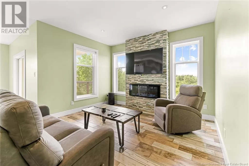 From Route 490, turn left onto Briar Rose Drive. From Ammon Rd, turn right onto Briar Rose Drive. *** CHARMING FULLY FINISHED BUNGALOW ON 1 ACRE LOT // HUGE ATTACHED GARAGE WITH MINI-SPLIT // FORCED AIR HEAT PUMP // BEAUTIFUL LANDSCAPING AND CURB APPEAL *** Welcome to 24 Briar Rose in Ammon, a well-maintained home nestled on a BEAUTIFULLY LANDSCAPED 1 ACRE LOT in a peaceful country setting, just minutes from Moncton. Built in 2017, this home offers nice curb appeal with its cultured stone exterior accent and massive wrap-around covered veranda with pot lights for an ideal evening setting. Inside, a welcoming main living area features 9 FT CEILINGS and LARGE WINDOWS for natural light. The MODERN white kitchen with ISLAND flows into the dining area with patio doors to a SECOND COVERED DECK overlooking your backyard that is ideal for summer nights by a fire pit. The living room features an ACCENT WALL with TV mount and ELECTRIC FIREPLACE. The main floor also includes a spacious primary bedroom, 2 additional good size bedrooms, 4pc bath with soaker tub and walk-in shower, plus a convenient laundry room with cabinets and sink. Downstairs, the fully finished basement adds a family room, office, and 3pc bath. The attached 32x25 GARAGE with a 23x12 BONUS BUMP-OUT offers endless flexibility for vehicles, hobbies, workshop, exercise space, or storage. Additional highlights include a huge paved driveway, year-round CLIMATE CONTROL, GENERATOR BACKUP PANEL AND PLUG, central vacuum, and air exchanger. This home does not disappoint! Be sure to visit soon! (id:27476)