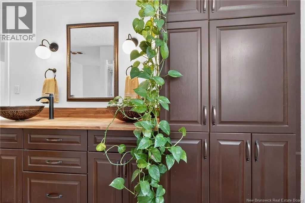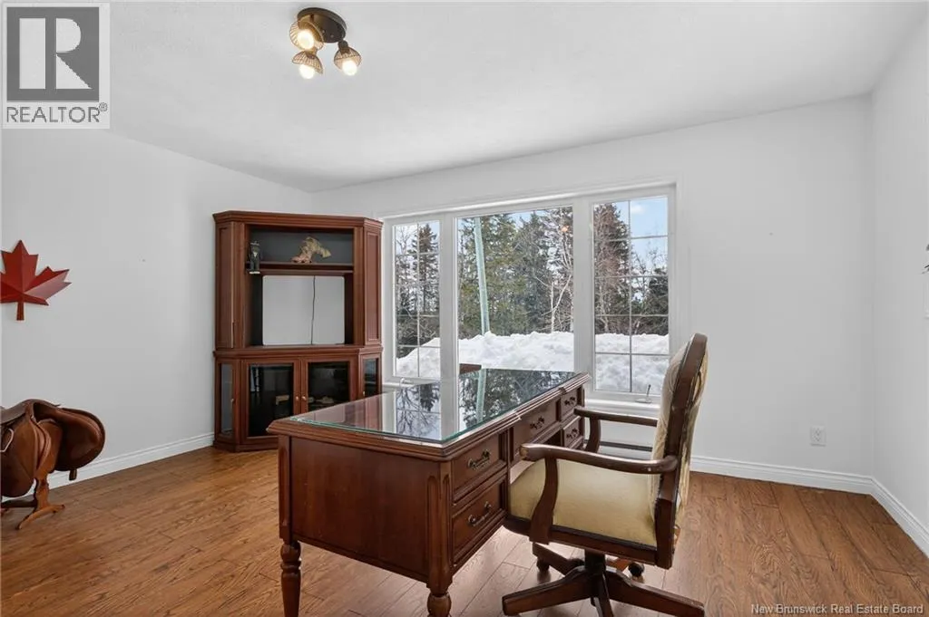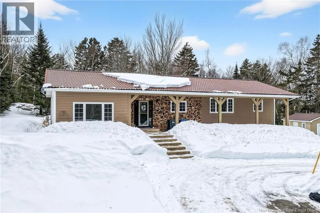 Head North out of Moncton on Route 490 (McLaughlin Road). This lovely home is just a 7 minute drive from Costco. This thoughtfully designed bungalow layout featuring private bedroom wings. Tucked into a peaceful enclave of custom estate homes just minutes from Moncton, this private 1.1-acre property offers elevation, space, and beautiful escarpment views when you head into the city. Set back from a newly resurfaced main road and surrounded by mature trees, the setting blends convenience with quiet countryside living. Inside, the layout is intentionally designed for both connection and privacy. The centrally located kitchen and dining area act as the hub of the home, naturally connecting the main living spaces. One side features the primary bedroom and a spacious office or sitting room, creating a quiet retreat ideal for remote work or relaxation. The opposite side includes the living room and two additional bedrooms, offering comfortable separation for family or guests. The fully finished basement greatly expands the living space, with a large rec room and flexible areas for hobbies, fitness, entertaining, or extended family, with potential for future in-law living. Families appreciate the nearby small K-5 community school and new playground just minutes away. With a metal roof, upgraded 200-amp electrical service, completed inspections, and thoughtful landscaping, this property offers privacy, flexibility, and lasting value. (id:27476)