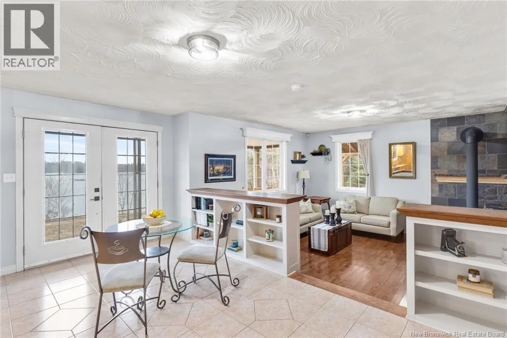 Take NB-127 north toward St George, then turn right onto Route 172 and continue until you reach civic # 768 on your right. Located in the scenic coastal community of Back Bay, NB, this waterfront property offers a great balance of comfort, space, and lifestyle. Set on approx. 4 acres (to be subdivided prior to closing), the property provides privacy along with beautiful views of the water. The upper level features three bedrooms and two full bathrooms, including a spacious primary suite with a walk-in closet and ensuite. A bright sitting area overlooking the water creates the perfect spot to relax or unwind at the end of the day. The main floor is designed with both functionality and flow in mind, offering a well-appointed kitchen open to the living room, where large windows take full advantage of the waterfront setting. This level also includes a formal dining room, a dedicated office, and a practical mudroom with laundry, a two-piece bathroom, and direct access to the attached garage. Above the garage, a self-contained loft with its own entrance provides added flexibility. Complete with a kitchen and bathroom, this bachelor-style space is ideal for extended family, guests, or potential rental income. Outside, the property continues to impress with a backyard set up for enjoyment, featuring a fire pit area, a large deck reinforced for a hot tub (and hookup ready), playhouse, and treehouse. An oversized detached garage adds even more value, offering ample storage or workspace. A versatile waterfront property in a peaceful setting, ideal for those looking to enjoy coastal living with room to grow. (id:27476)