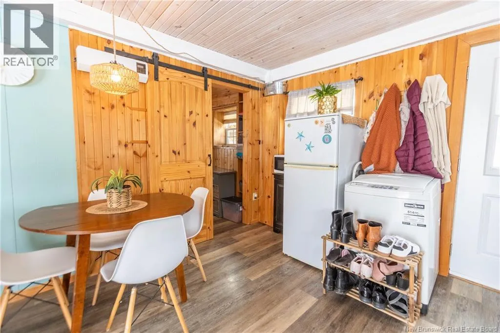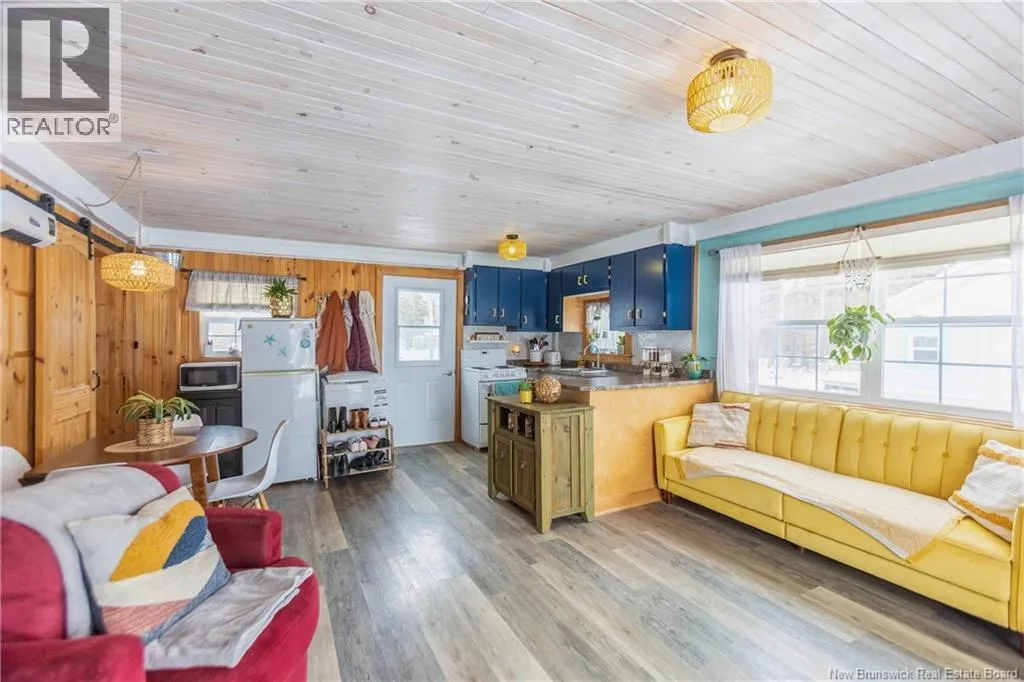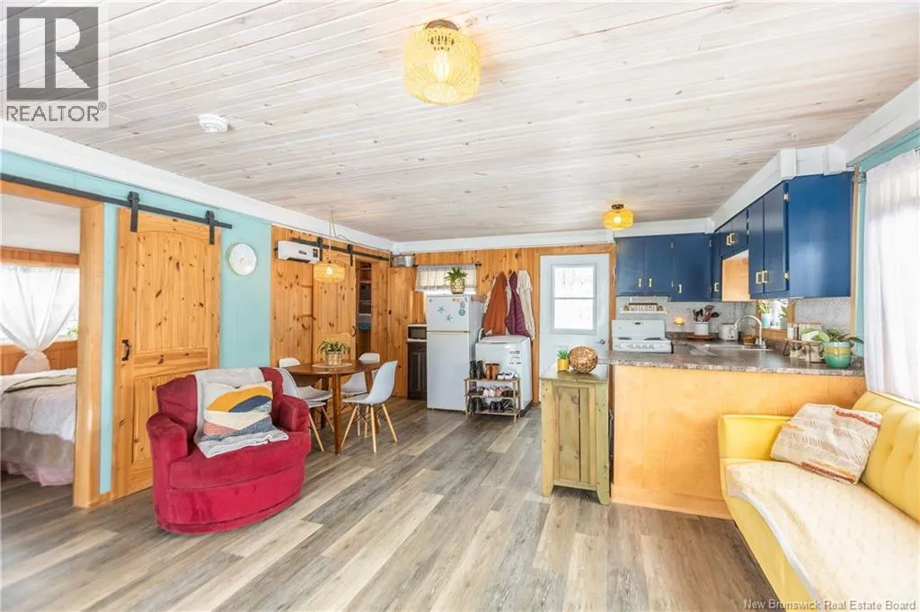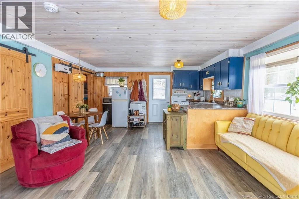 From Route 970 turn onto Woods Beach RENOVATED WATERVIEW HOME/COTTAGE JUST 75 METERS FROM THE BEACH! Located in a quiet area of cottages and year-round homes this one could be either! Through the door is the open-concept main floor with gorgeous white-washed pine ceilings, durable vinyl plank flooring, and surrounded by windows. There is a kitchen with peninsula, a dining area, and a spacious bright living room and with a patio door to the deck. There is one large bedroom and a full 3pc bathroom. On the front is a large deck with a screen room to enjoy the summers, and the back has a lovely 2-level deck with covered area. There is a large backyard with a storage shed as well. This property has seen many renovations over the last number of years including ductless heat pump, steel roof, vinyl cedar-shake style siding, newer doors and windows, vinyl-plank flooring, countertops, pine finishings. This property can come fully furnished and equipped inside and out! (Less personal items and the red living room chair). Fantastic location just 20 minutes to Sackville or Amherst, 45 minutes to Moncton, and 30 minutes to the Confederation Bridge. (id:27476)