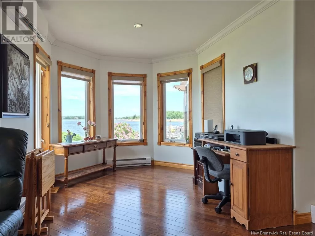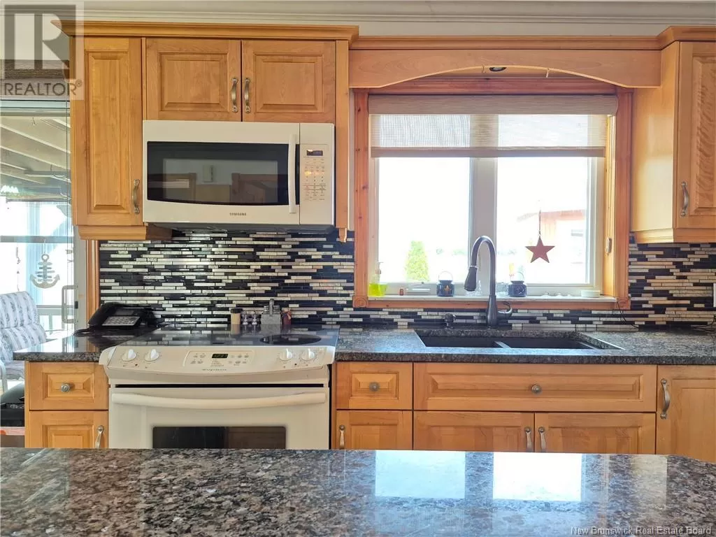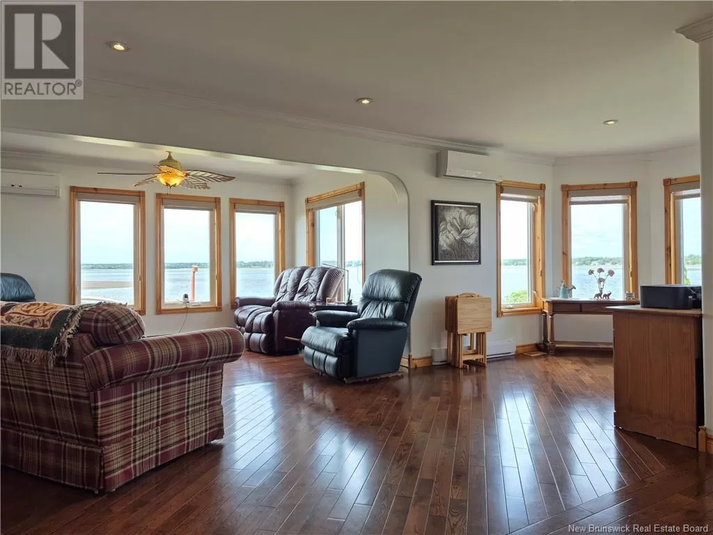 This one-of-a-kind property offers over approximately 185 feet of a stunning panoramic view of the Bay of Chaleur and Bathurst harbour with your very own access to the beach. Step inside and be greeted by a bright open-concept layout with large windows along the north side that flood the space with natural light and panoramic water view. Built in 2003, the home was thoughtfully constructed with double plywood walls on the north side to help protect against cold and wind during winter, making it cozy year-round. Enjoy morning coffee or evening sunsets from the porch complete with power and a ceiling fan or host guests in the detached gazebo, perfect for summer sleepovers with family and friends. Whether you're relaxing in the peace and quiet of your beautifully landscaped yard, taking in the ocean breeze, or enjoying easy access the beach, this home truly offers your own slice of paradise just minutes from local amenities. Dont miss this rare opportunity to own waterfront living at its best. (id:27476)