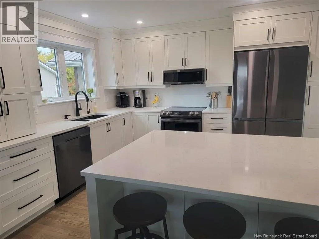 Bridge Street to East Bathurst, left on Miller Lane, right on Mercury St. For more information, please click Multimedia button. Enjoy peaceful city living with water views just 5 minutes from downtown Bathurst in this 2-storey home offering space, privacy, and outdoor areas. The main level has an open-concept kitchen and living area overlooking the yard and the water, plus a main-floor office with windows and side-patio access, main-floor laundry, and central vacuum. Altogether there are 4 spacious bedrooms, 3 walk-in closets, and 3.5 bathrooms, with a finished basement adding a bedroom, full bath, and living room. Modern efficiencies include metal roofing on the house and garage, a geothermal heating system that uses energy from ground water, and multiple patio doors with triple thermal-pane windows. Recently updated appliances are included as is a 6-person outdoor spa with a view. Approx. 1,930 sq. ft. across two floors (finished basement not included). Parking and storage are exceptional with a 21' Ã 21' attached single-car garage and a 32' Ã 34' insulated detached two-vehicle garage just steps from the house, plus a paved driveway that accommodates multiple guests and driveway sports. Outdoor living shines with a west-facing rear deck for BBQs and sunsets over Bathurst Harbour, stone patios on the sunny south and west sides, and a 19,700 sq. ft. lot with 125' frontage (per SNB), fruit trees, and a vegetable garden. Walk across Bridge Street to connect with the NB Trail system - steps to outdoor recreation. (id:27476)