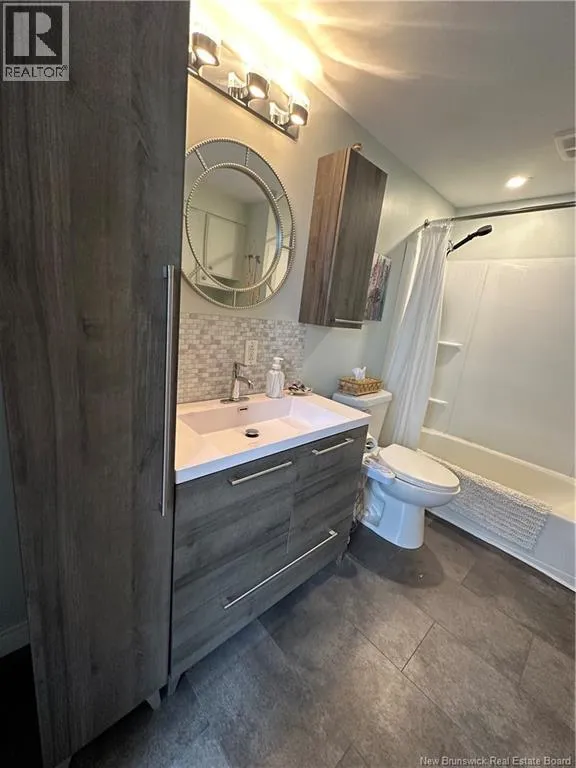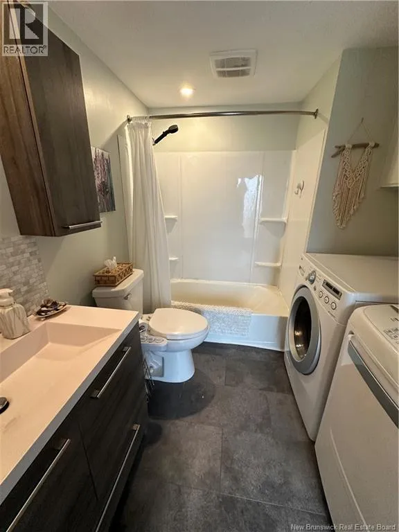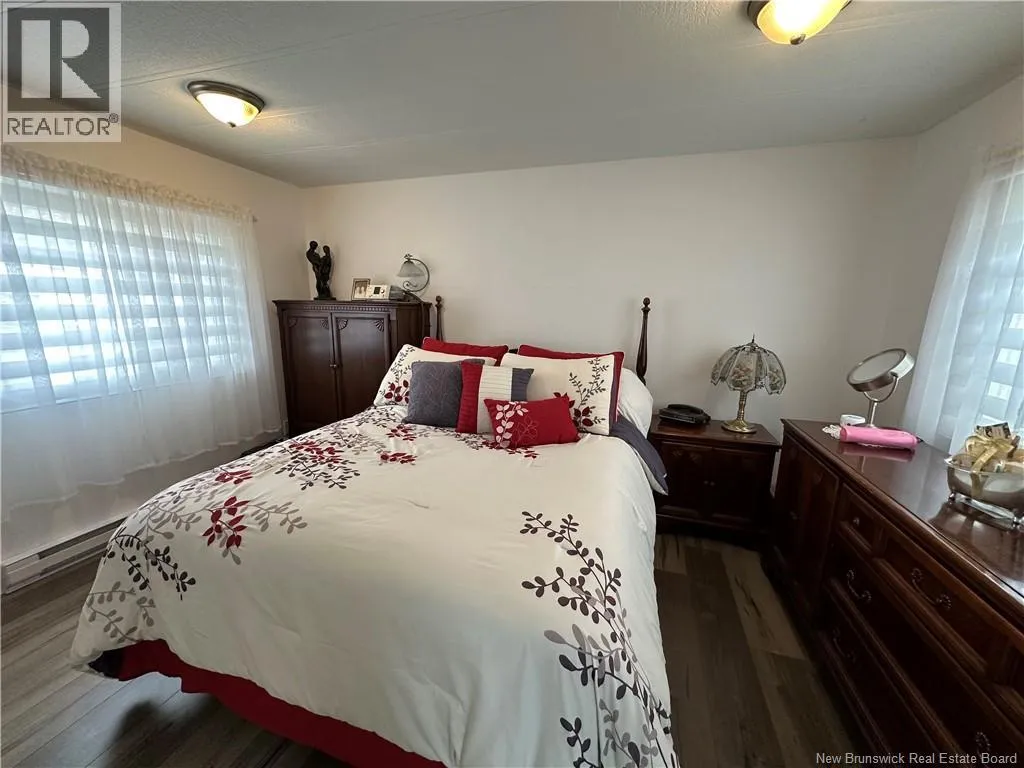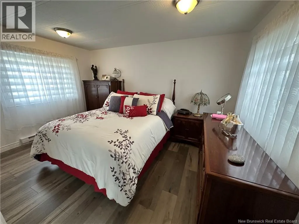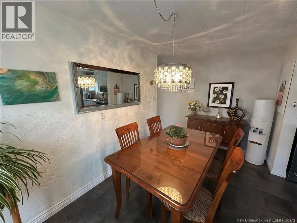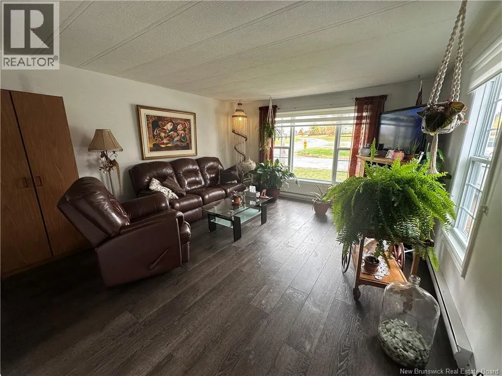 Corner of College St and Lakeside Beautifully appointed mobile home in the Kent Trailer park in Bathurst. Lots of updates and well maintained, sunshine floods this home with light. Situated on a corner lot with large private patio with privacy fencing surrounding it and storage shed for your garden tools and lawn mower etc. Enter the side door and there is an entry with closet and nice space without being in the living area or kitchen. Kitchen has painted cabinets and nice appliances which can be negotiated at time of sale. Dining room is spacious and allows for family dining and entertaining without being in the kitchen. The living room is large and on the front of the home with large PVC windows and amazing sunshine flooding in warming your space all fall and winter with passive energy! A fabulous place to grow plants! Then down the hallway you will find 2 good sized bedrooms and a full bathroom with laundry. The bathroom has nice new vanity and storage tower making it sleek and modern. The other access door off the hallway has a small balcony. There is a second parking space behind this mobile home access from the street behind ideal if you are a two car family and need more parking! (id:27476)