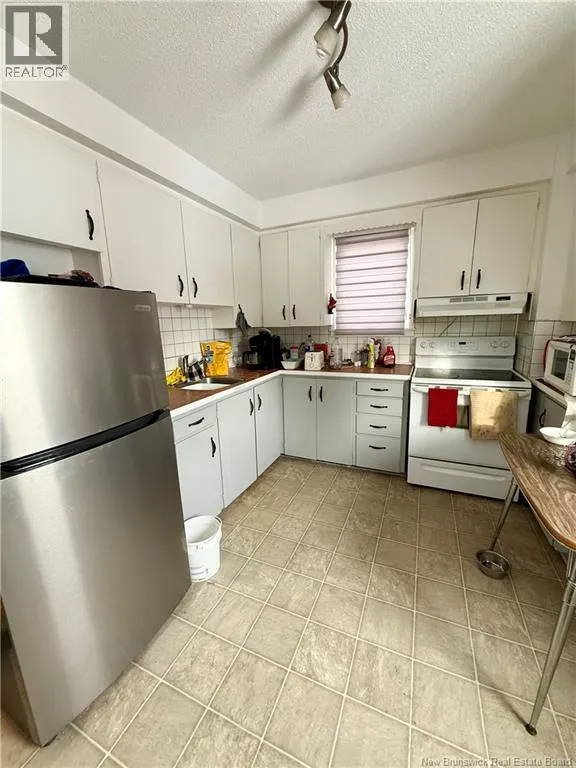 Follow Bridge Street toward Bathurst. It will merge onto Murray Avenue. Turn right onto Munro Street, then take the first street on your right. Access is behind the house. This well-maintained two-unit duplex is an excellent opportunity for rental income or owner-occupancy. The main-level unit features an updated eat-in kitchen, a spacious bedroom, a large living/dining area, baseboard heaters, and a mini-split for year-round comfort. Enjoy both a shaded front porch and a private renovated rear porch overlooking the backyard. Laundry is conveniently located in this unit, with access to a large unfinished basement offering great storage and potential. The upper unit has its own private entrance, a bright kitchen with in-unit laundry, three bedrooms (or two plus a living room), refinished hardwood floors, fresh paint, a mini-split, and access to a large walk-up attic. Recent upgrades include roof shingles, PVC windows, porches, deck, staircase, and two mini-splits. (id:27476)