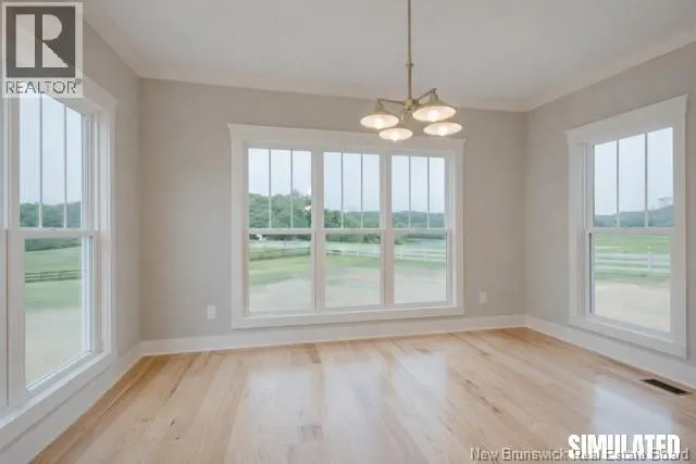 Route 101 to Beaverdam, turn onto O'Leary Road Welcome to peaceful country living, minutes from the city. This to be built Craftsman-style bungalow offers the perfect balance of privacy, and comfort and located less than 15 minutes from Fredericton. The thoughtfully designed main level features bright, open-concept living with a spacious great room, kitchen, and dining area enhanced by abundant natural light. The kitchen offers a large island, ample cabinetry, and a walk-in pantry, ideal for everyday living and entertaining. Just off the dining area, a rear deck extends the living space outdoors, creating the perfect place to relax and take in the surroundings. The primary suite includes a walk-in closet and a well-appointed ensuite with dual vanities and a custom tile shower. Two additional bedrooms and a full bathroom are positioned in a split-bedroom layout for added privacy. A functional mudroom connects directly to the attached double garage. The basement is unfinished with excellent potential. Photos are Simulated. HST Rebate Back to Builder. Vendor is related to listing agent who is a Licensed REALTOR® with Province of New Brunswick. (id:27476)