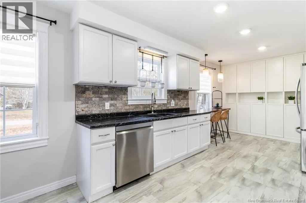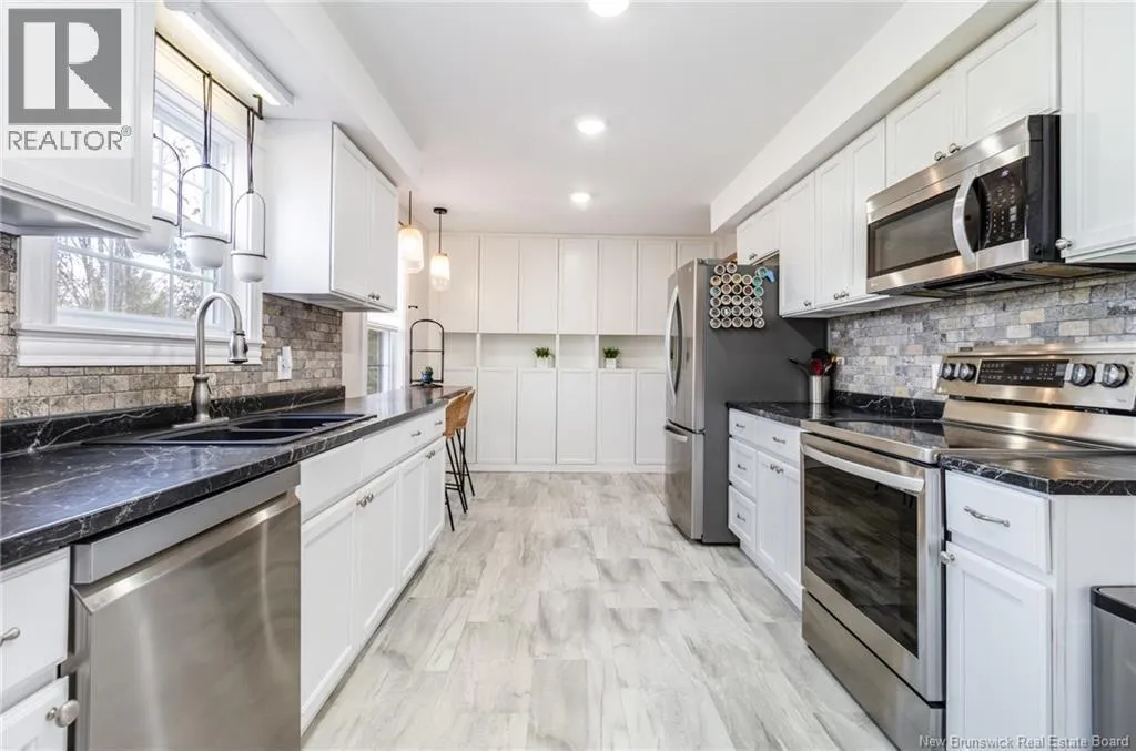 ROUTE 101, TURN LEFT ONTO ALEXANDER Great family home! 56 Alexander is finished on all 3 levels, with newer windows and doors, a large galley kitchen with loads of cupboard space and storage and a well thought out layout. The main level boasts a large living area and dining area which are open to the back yard, with patio doors adjacent. A newly cleaned and certified pellet stove offers a warm and efficient heat in the cold months. Upstairs there are 3 large bedrooms, while the primary bedroom has 2 large walk in closets, along with custom built cabinetry. The main bath is very spacious, with a separate laundry room to keep everything nice and tidy. The basement has 2 great sized finished spaces, perfect for an additional den, media room or office. The utility room provides additional storage. The ducted heat pump, water treatment and generator panel are all located in here. Clean water, efficient heating and cooling and a backup system in case of a power outage - these owners have thought it all through. All the hard work is done for the new buyers. Conveniently located in a quiet area between CFB Gagetown and Fredericton, it makes for a perfect location whether you work on Base or in the city. (id:27476)